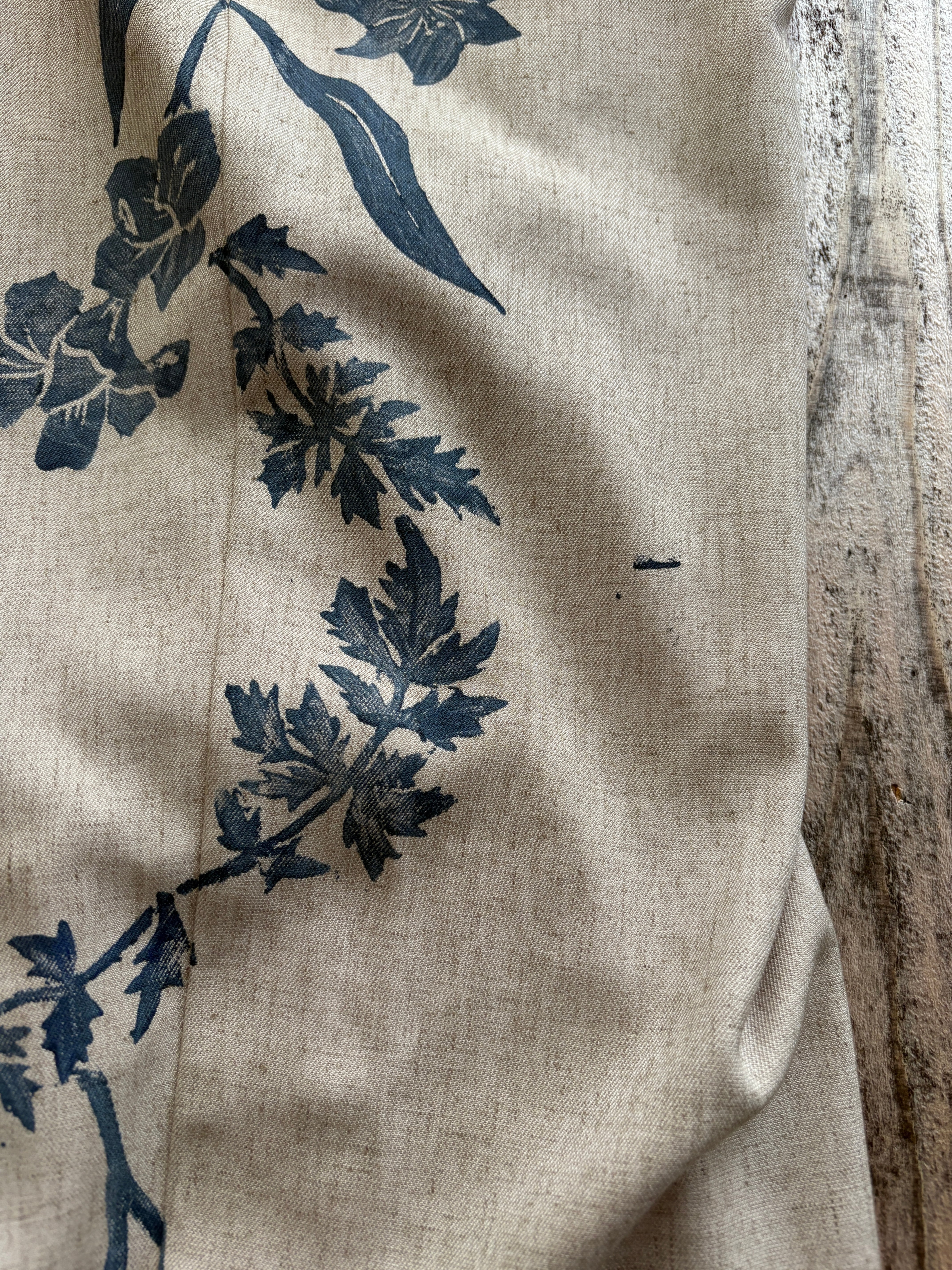 深海色で版を押しました、サイドの縫い目に版を押してます。一番難しいのは縫い目…なんとか押せました⭐︎