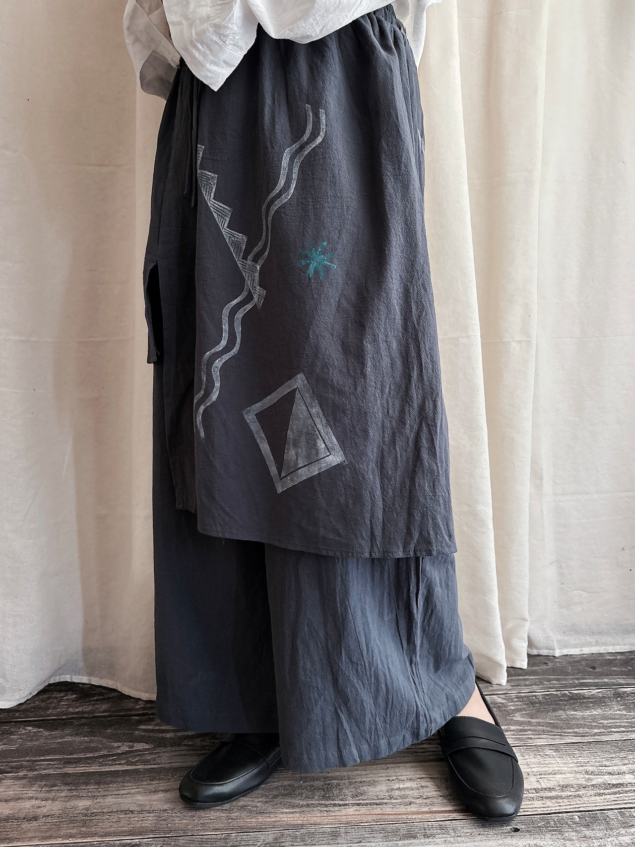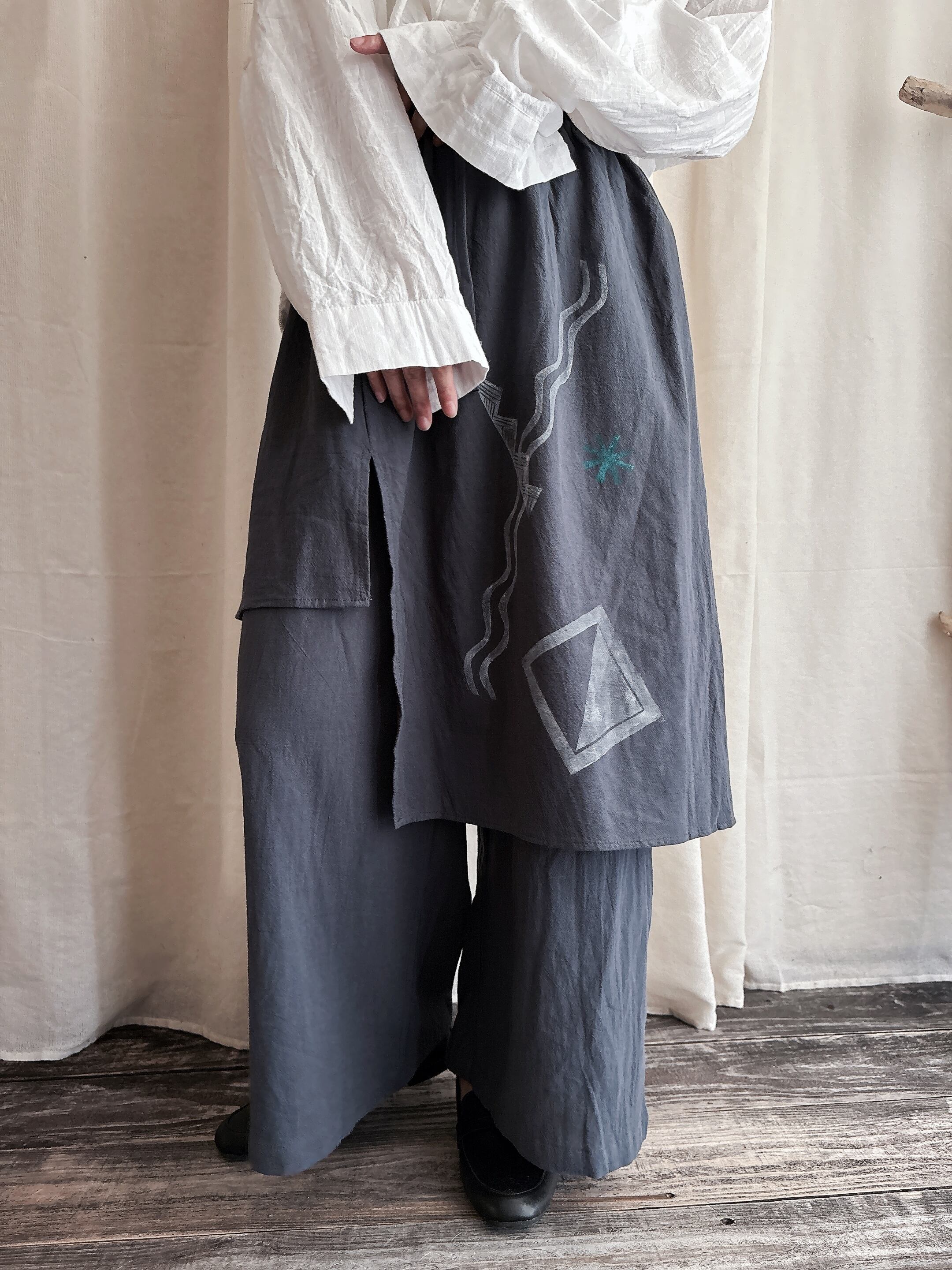 琉球時代の縄文土器の模様をモチーフにしたデザインだったり、沖縄独自のコンクリートブロックデザインの花ブロックをプリントしたりされてます