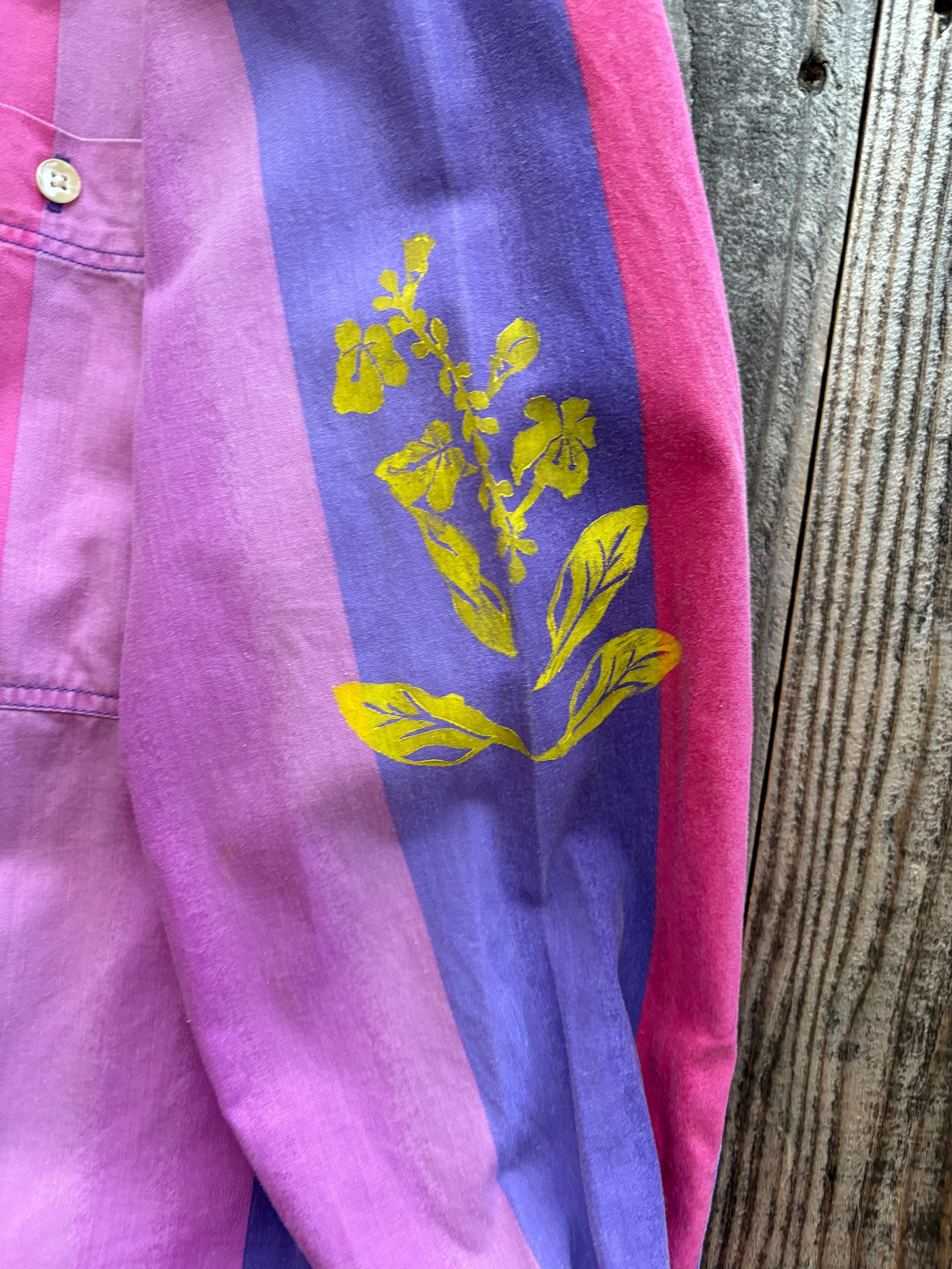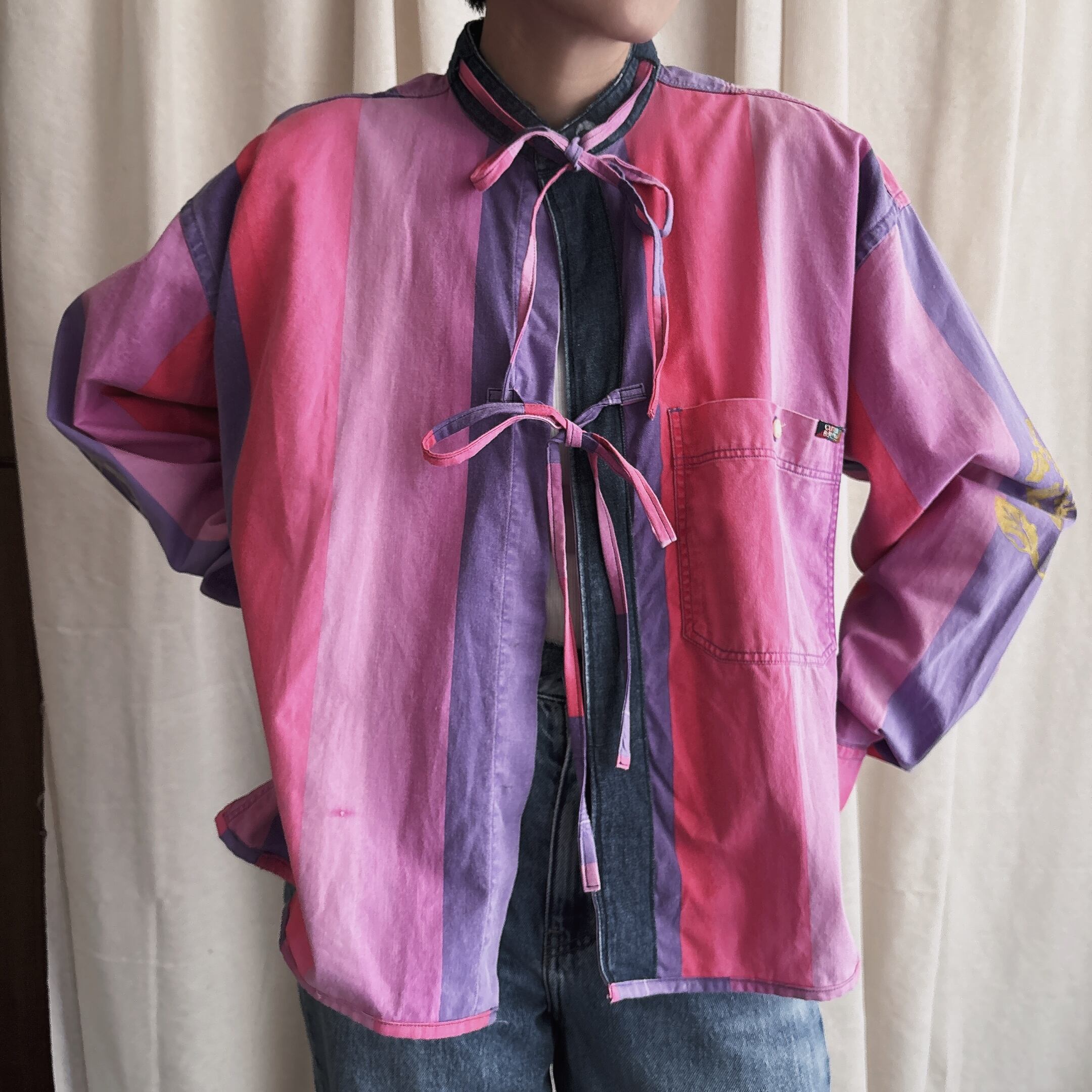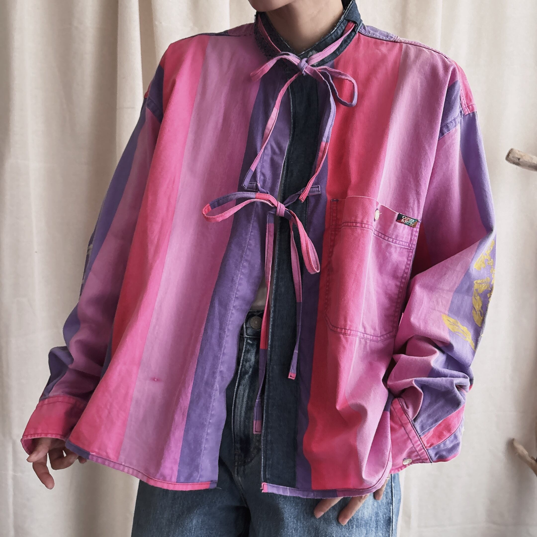 古着をリメイクした作品に沖縄をモチーフに手彫りで彫った版画で一つ一つ服にプリントしています⁎ˇ◡ˇ⁎