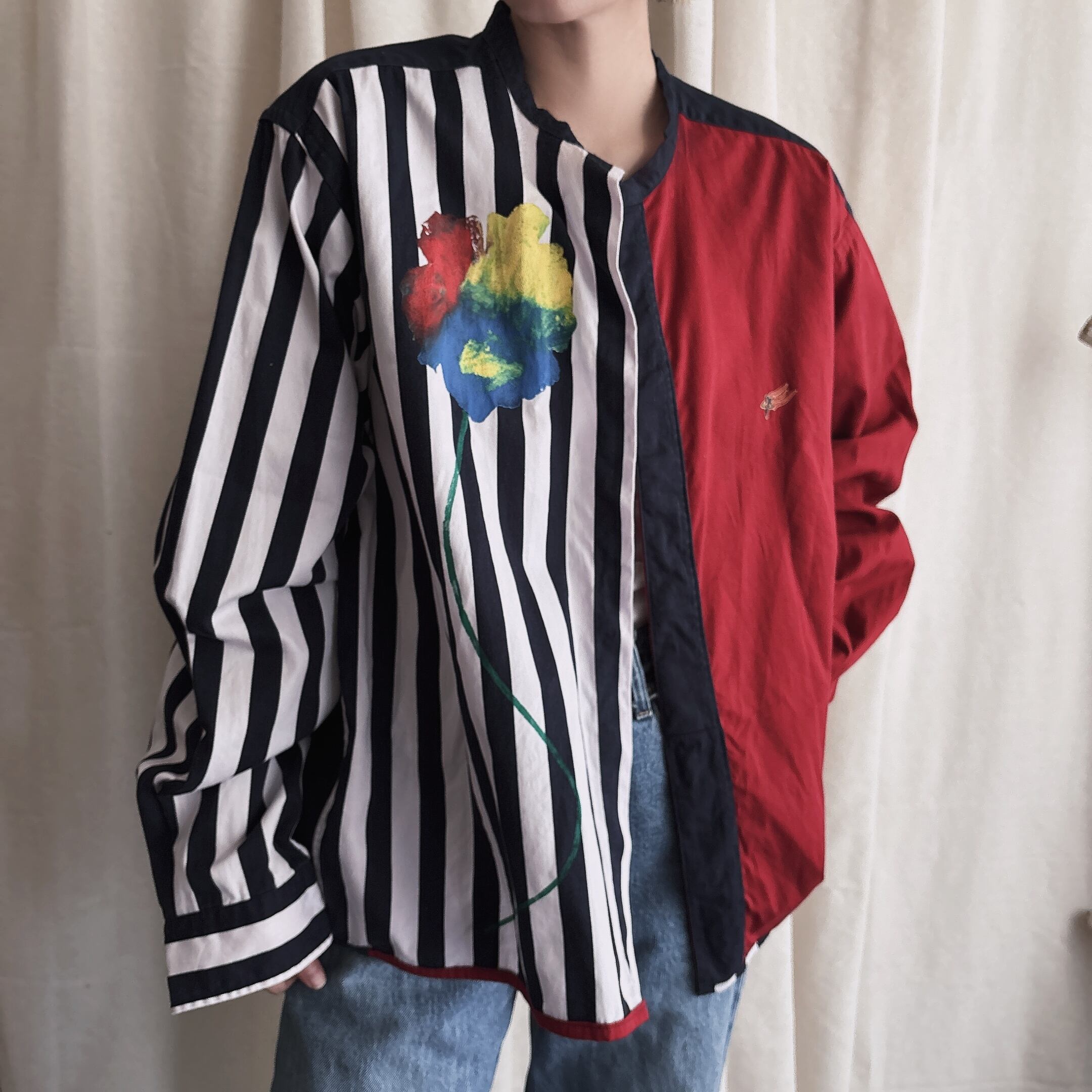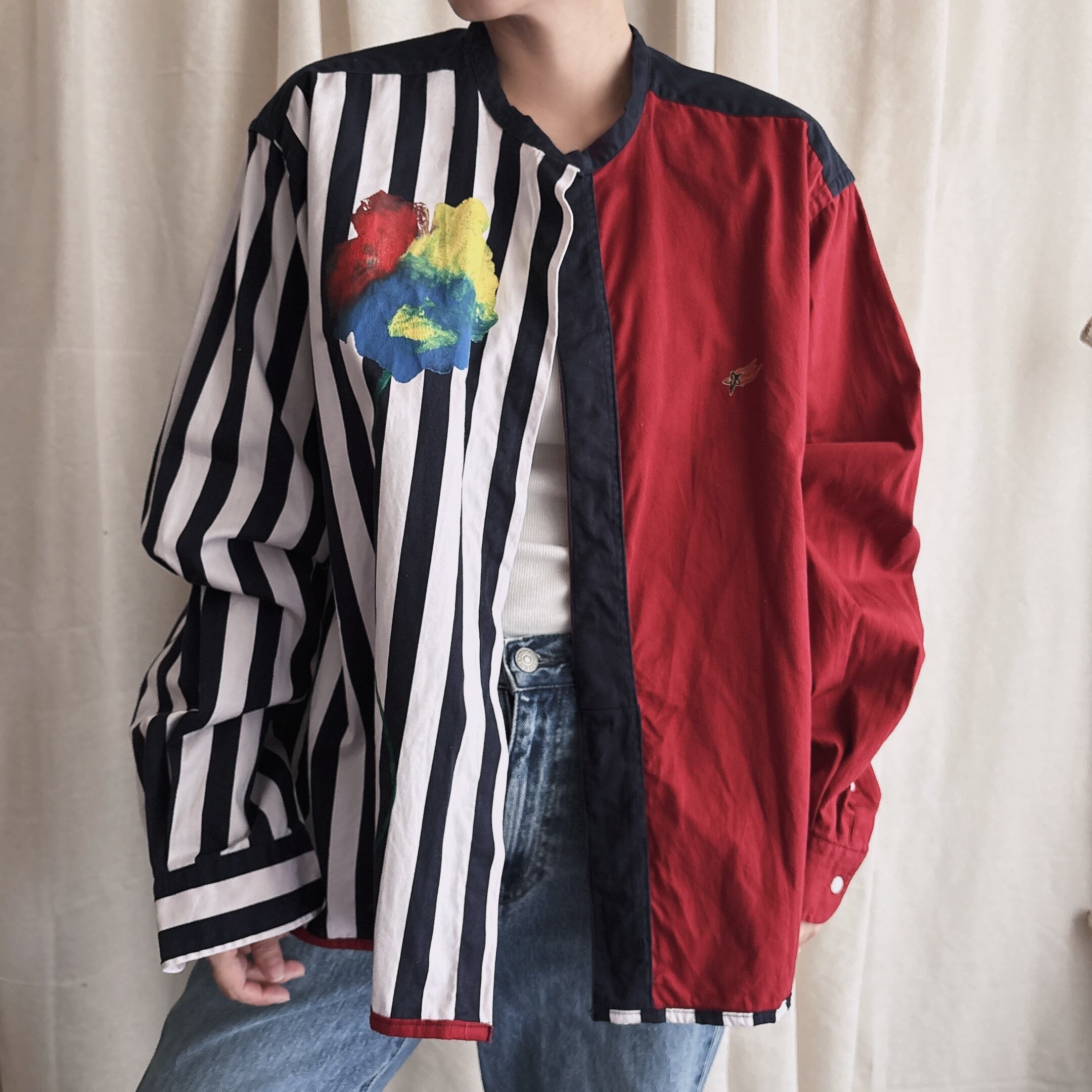 メンズシャツをリメイクしてますのでレディースはオーバーになります