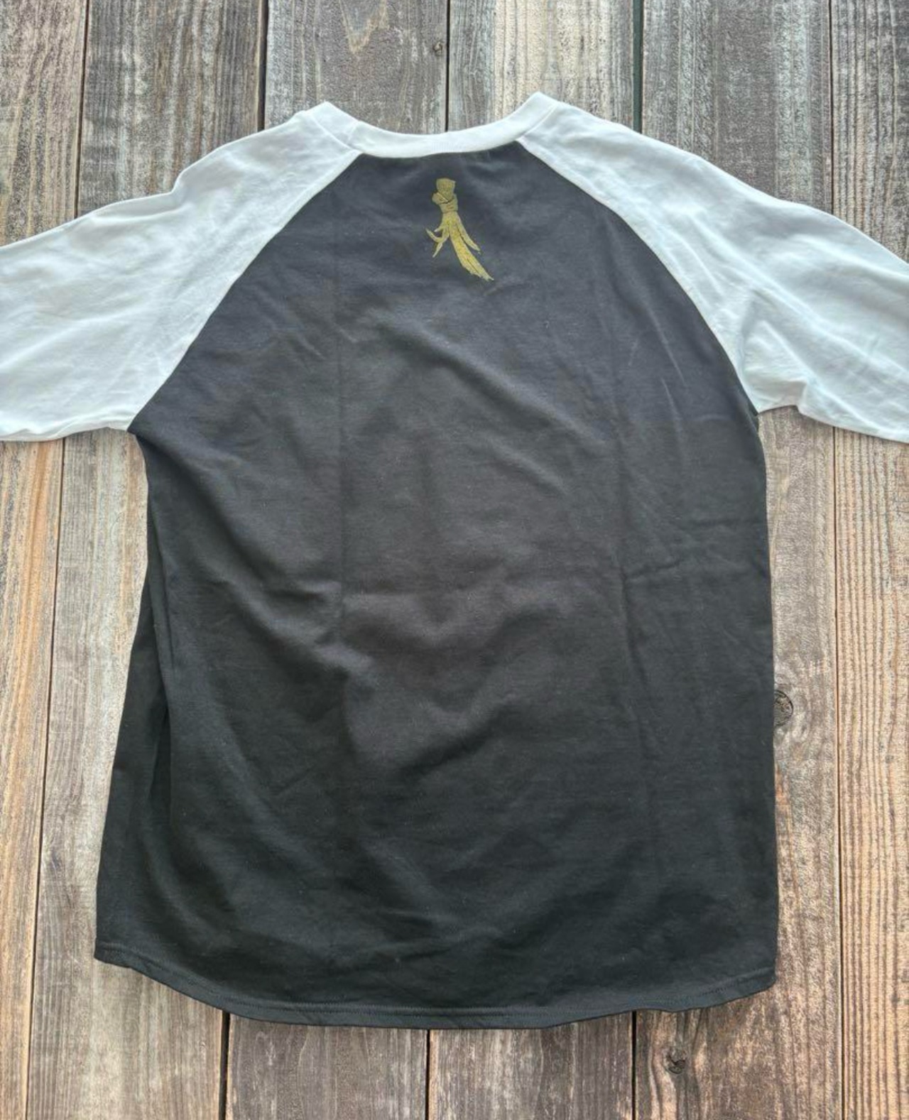 ラグランシャツに作家手彫りの版画でプリントされてます。