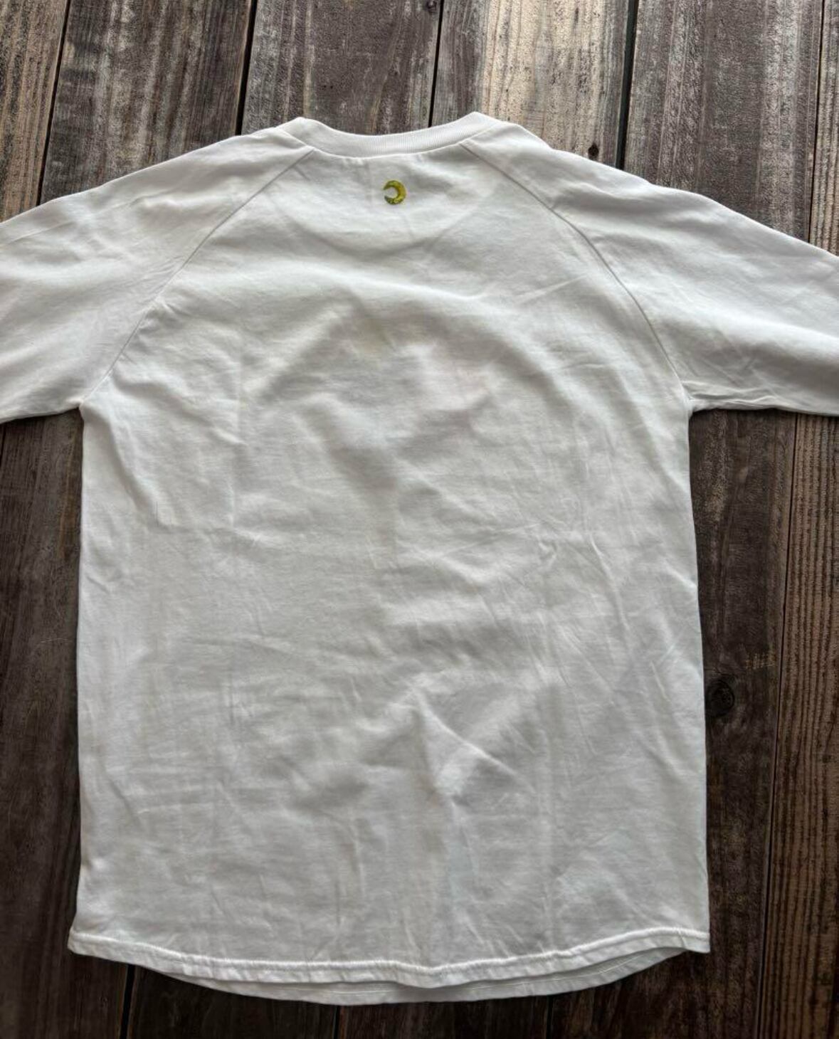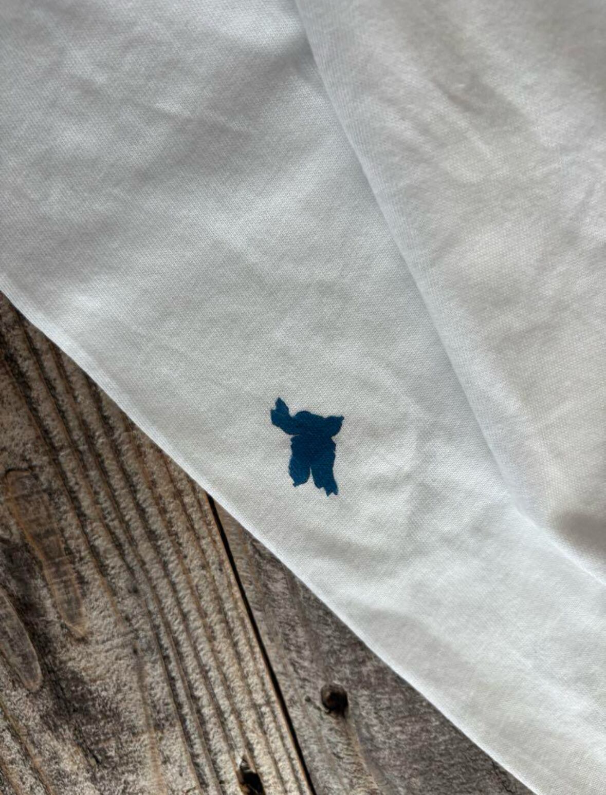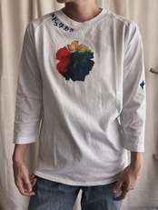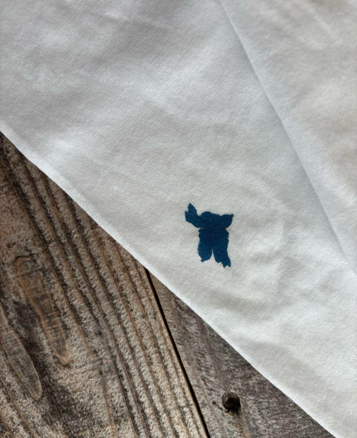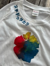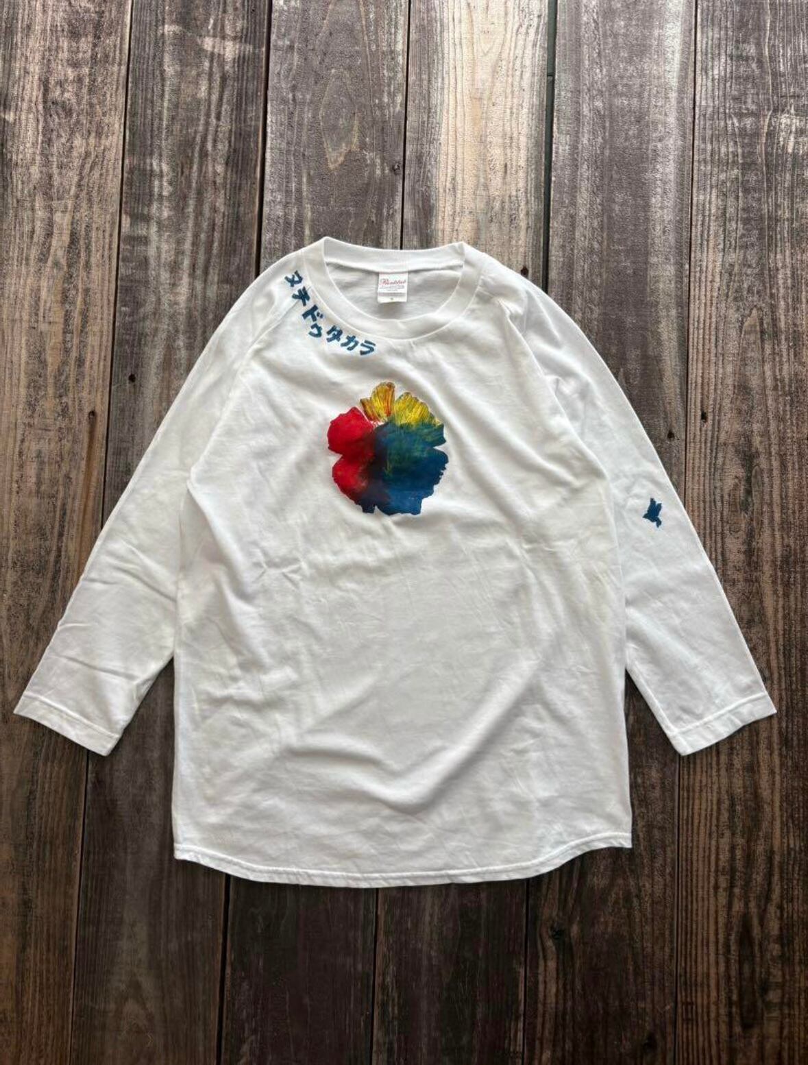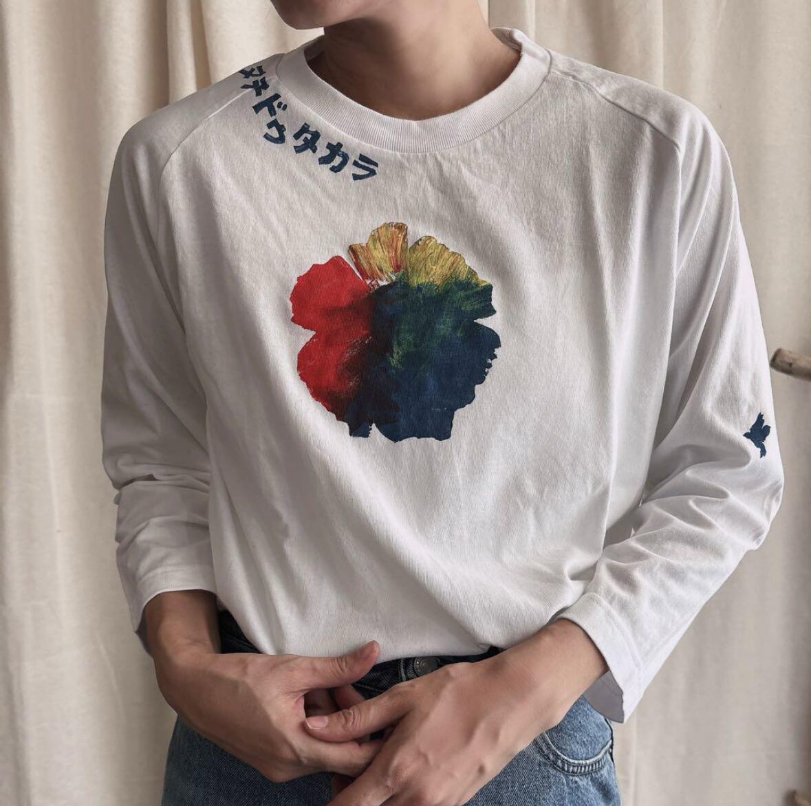 ラグランシャツに作家手彫りの版画でプリントされてます。