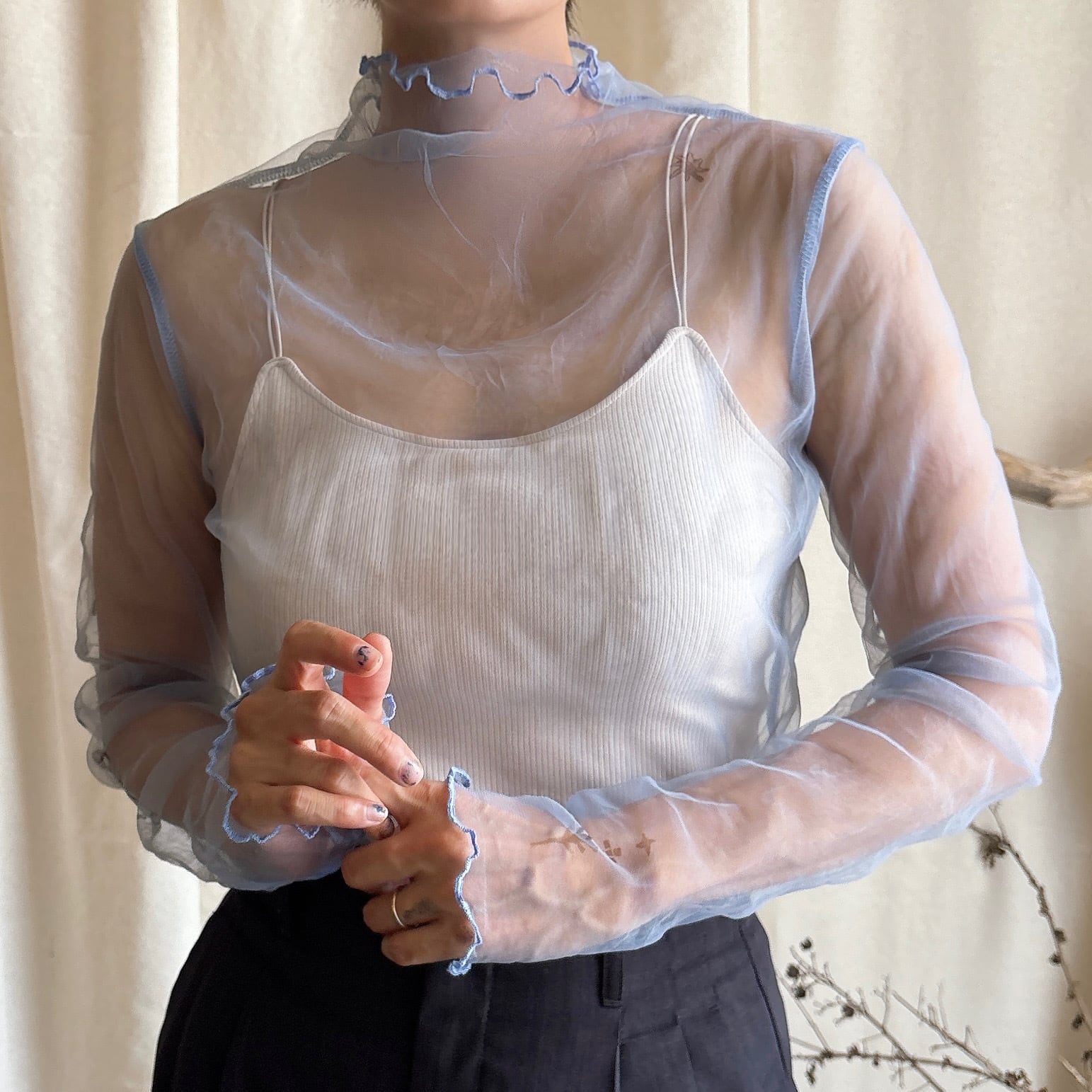シースルーの縁にアクセサリーが付いてるので、襟がフニャッとなりにくいのと可愛いです。
