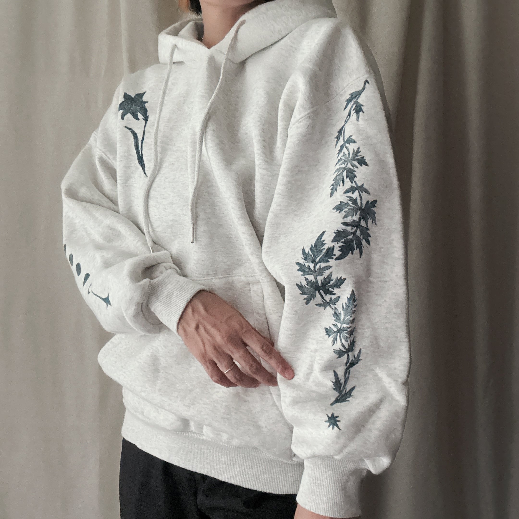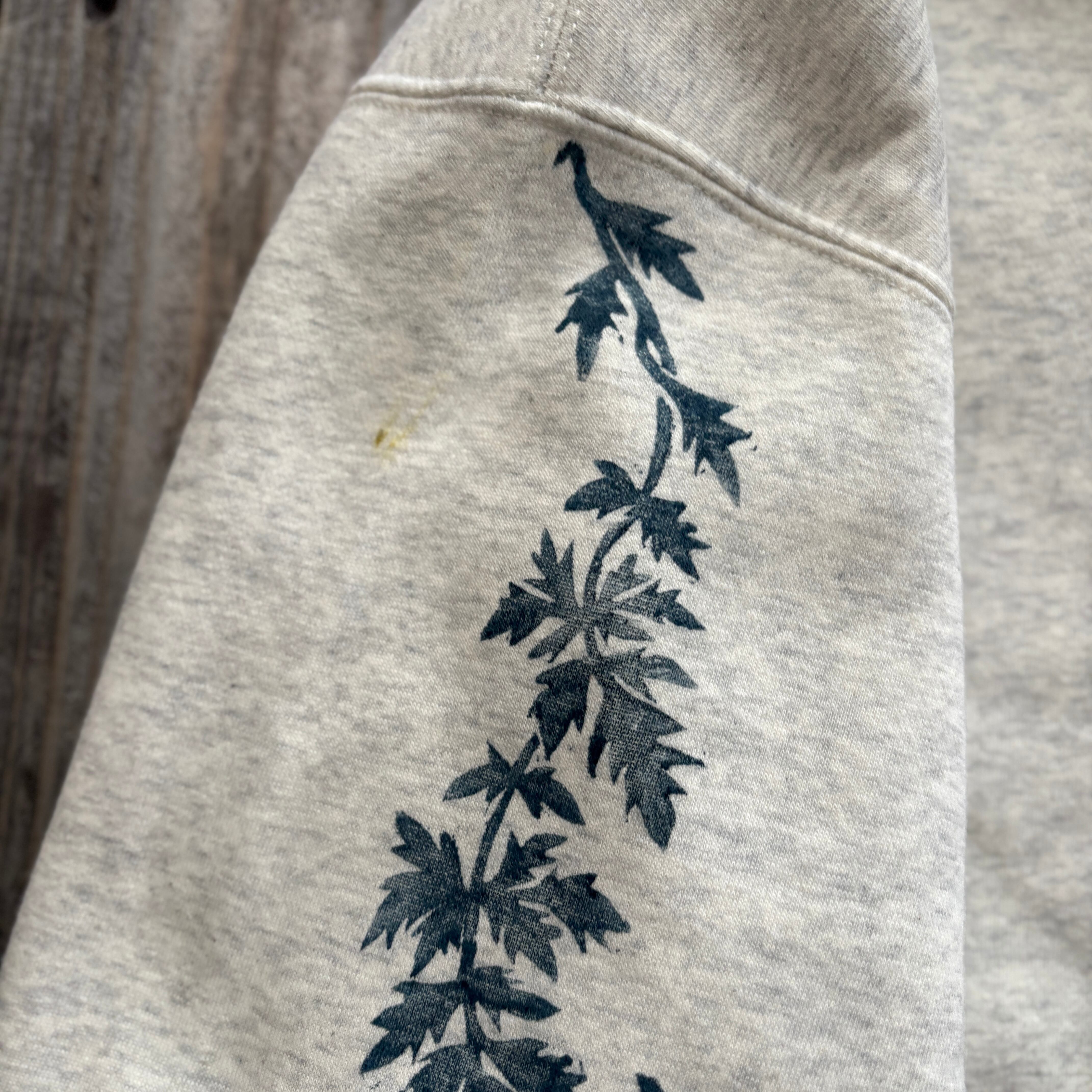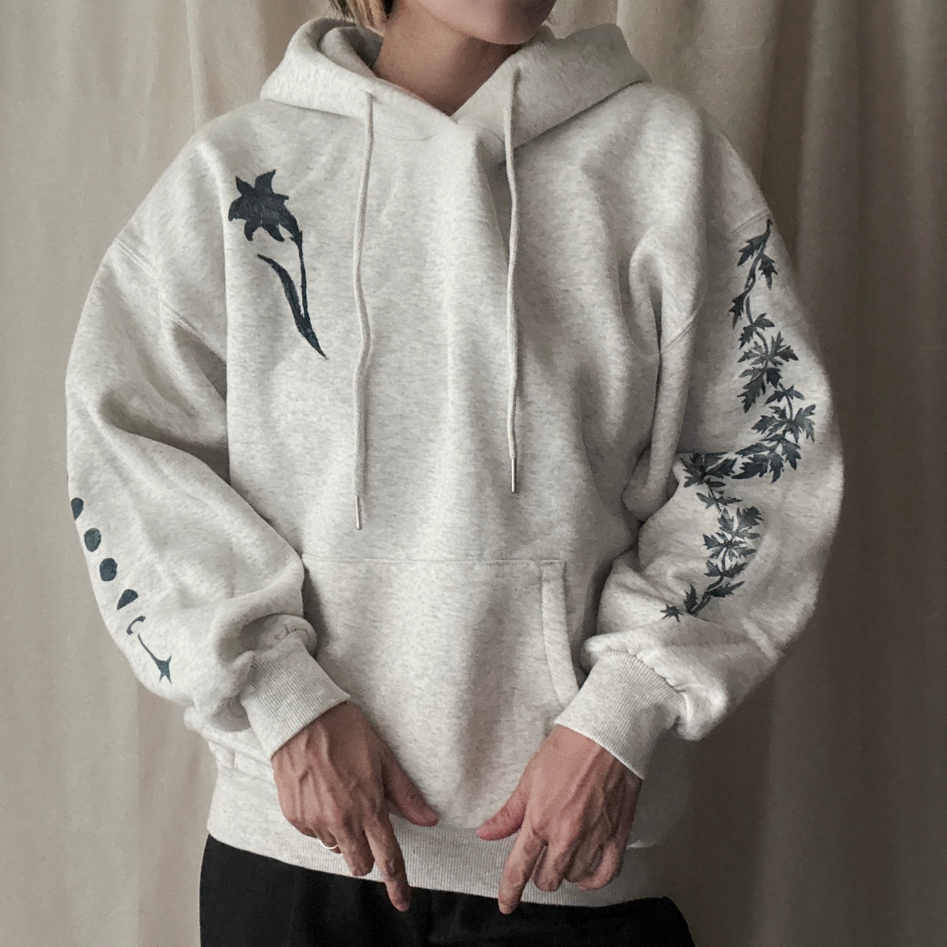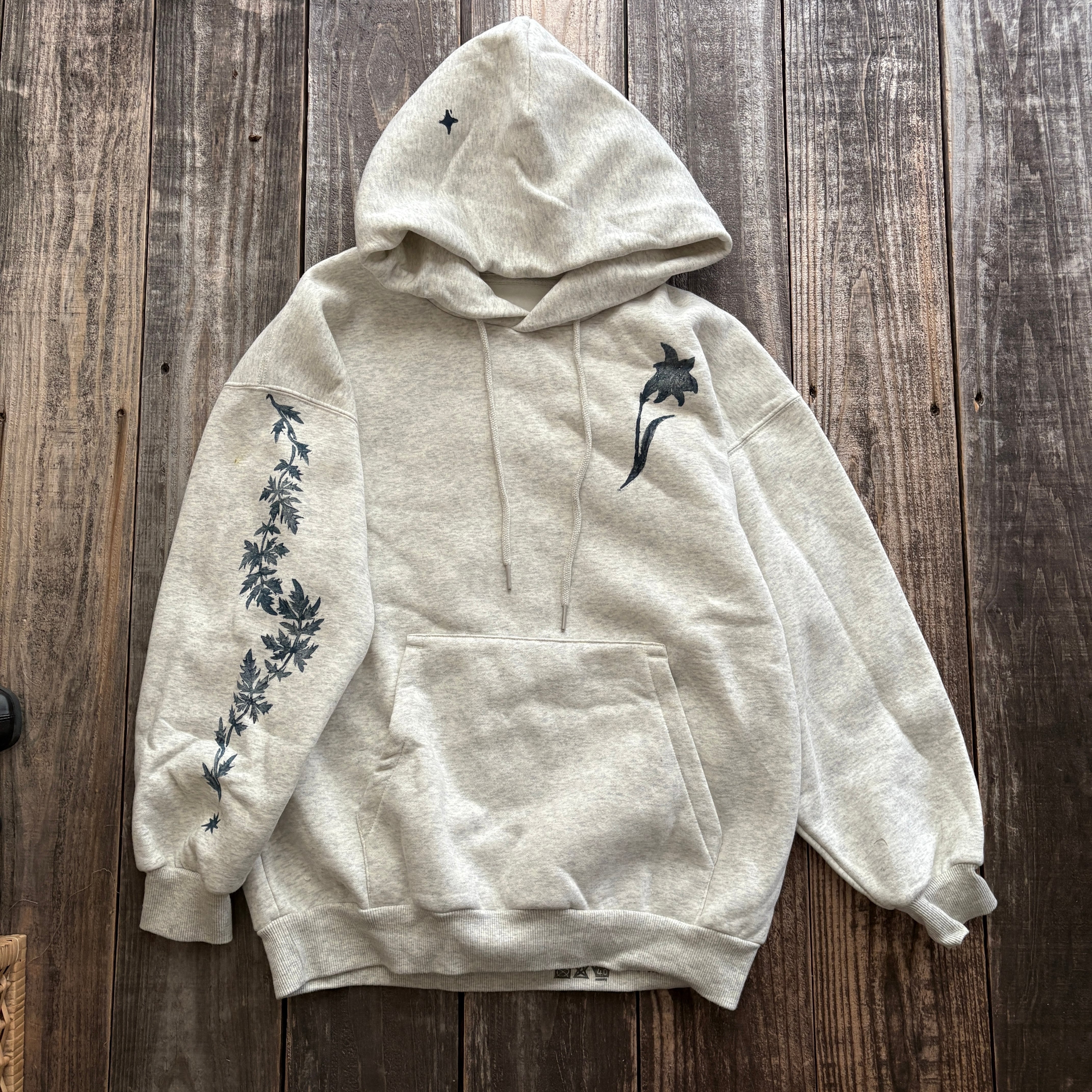 琉球にちなんだ野花を手彫りした版にインクをのせて服にプリントされてる品になります