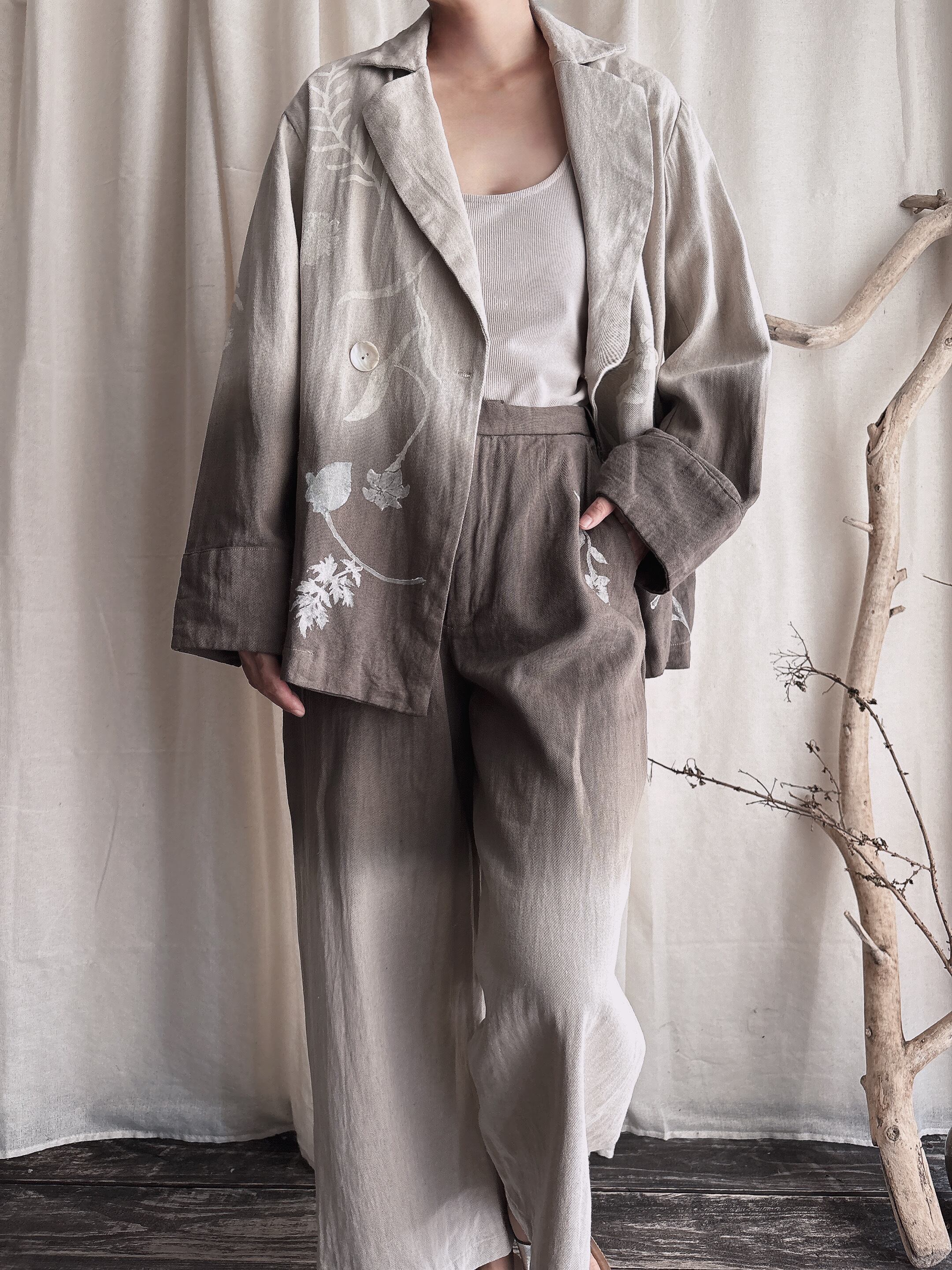 受注オーダー制作専用ページ NO.8 染め リネンセットアップ ジャケット レディース 花柄