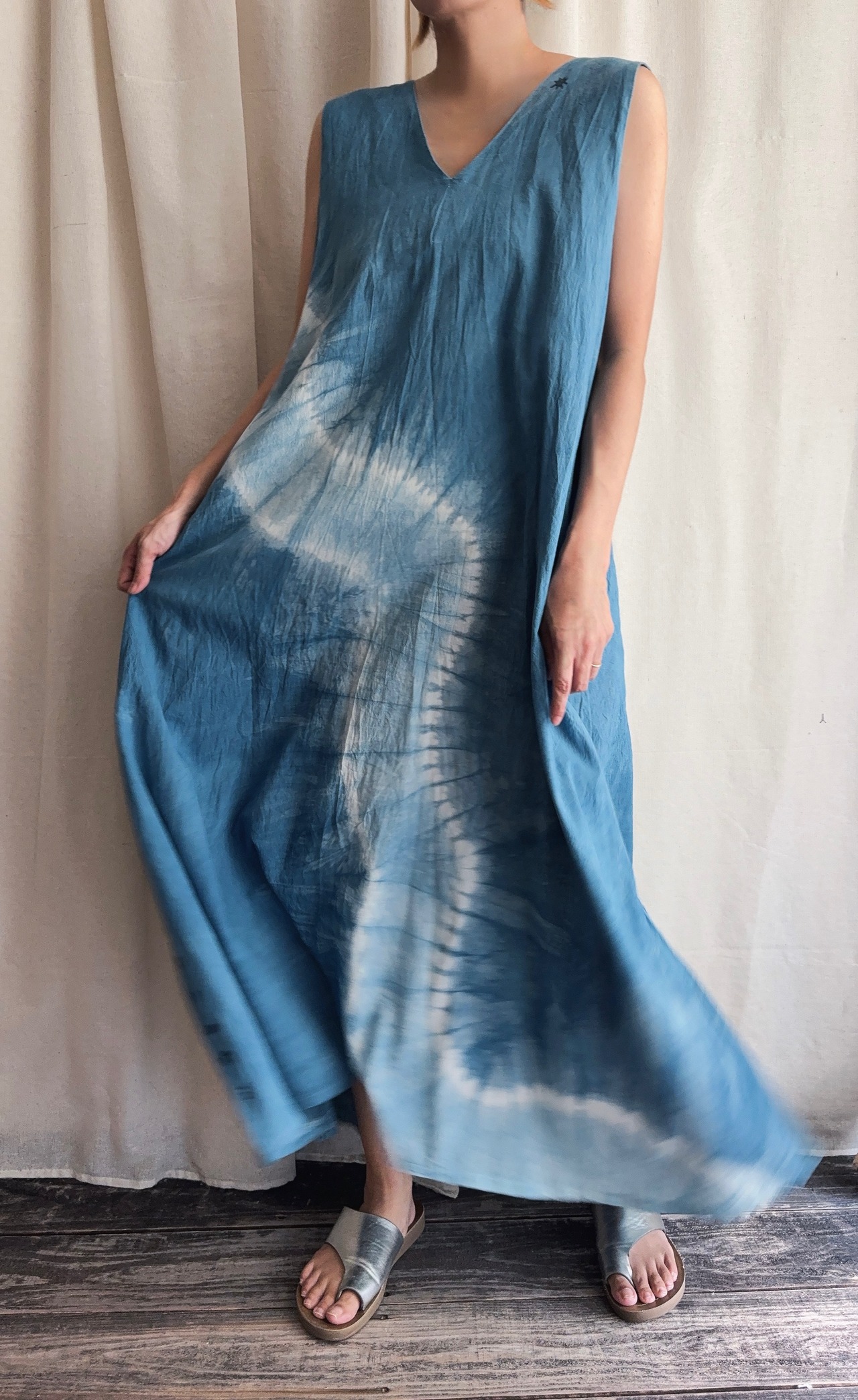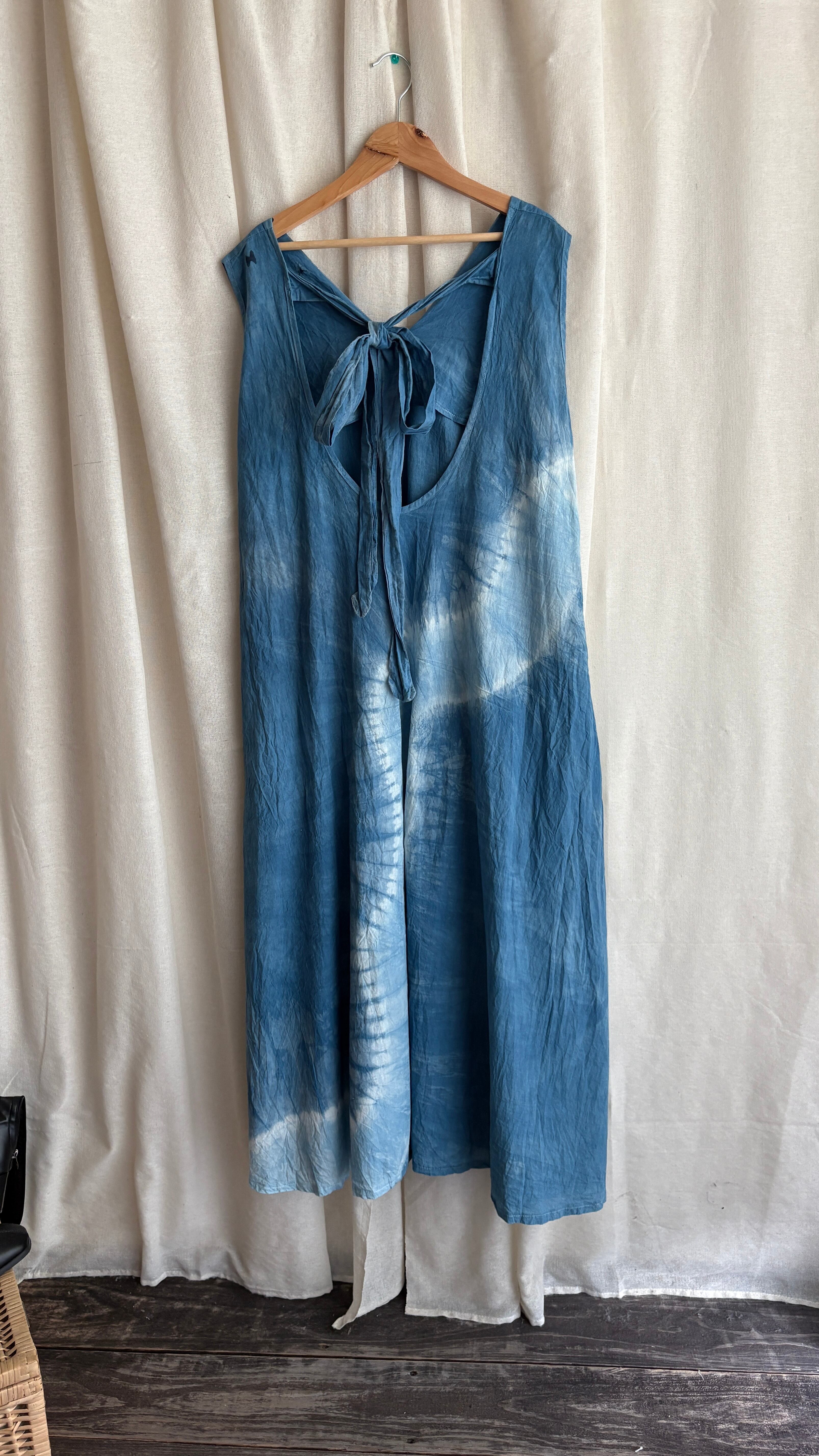 チェンマイで作られた藍染めのハンドメイドキャミワンピース。