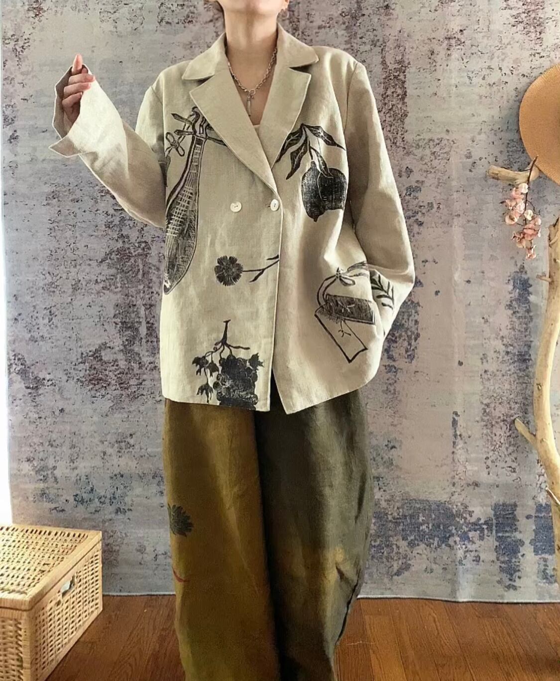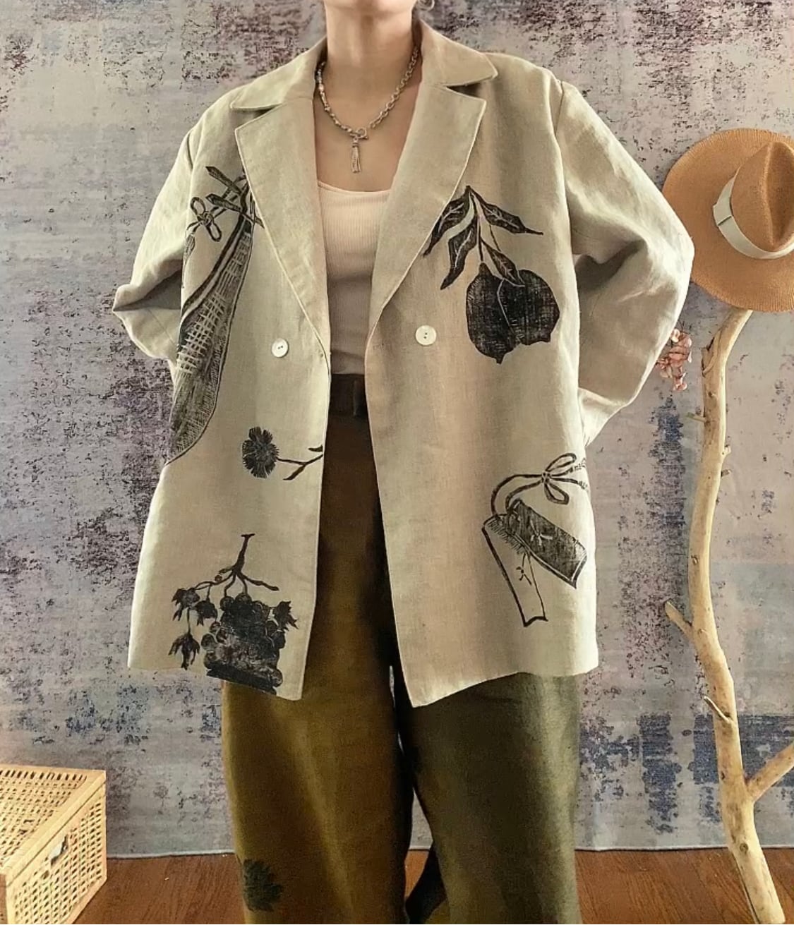 メイドイン琉球になります。写真はヴィンテージリネン生地を一からお仕立てしたジャケットになります。
