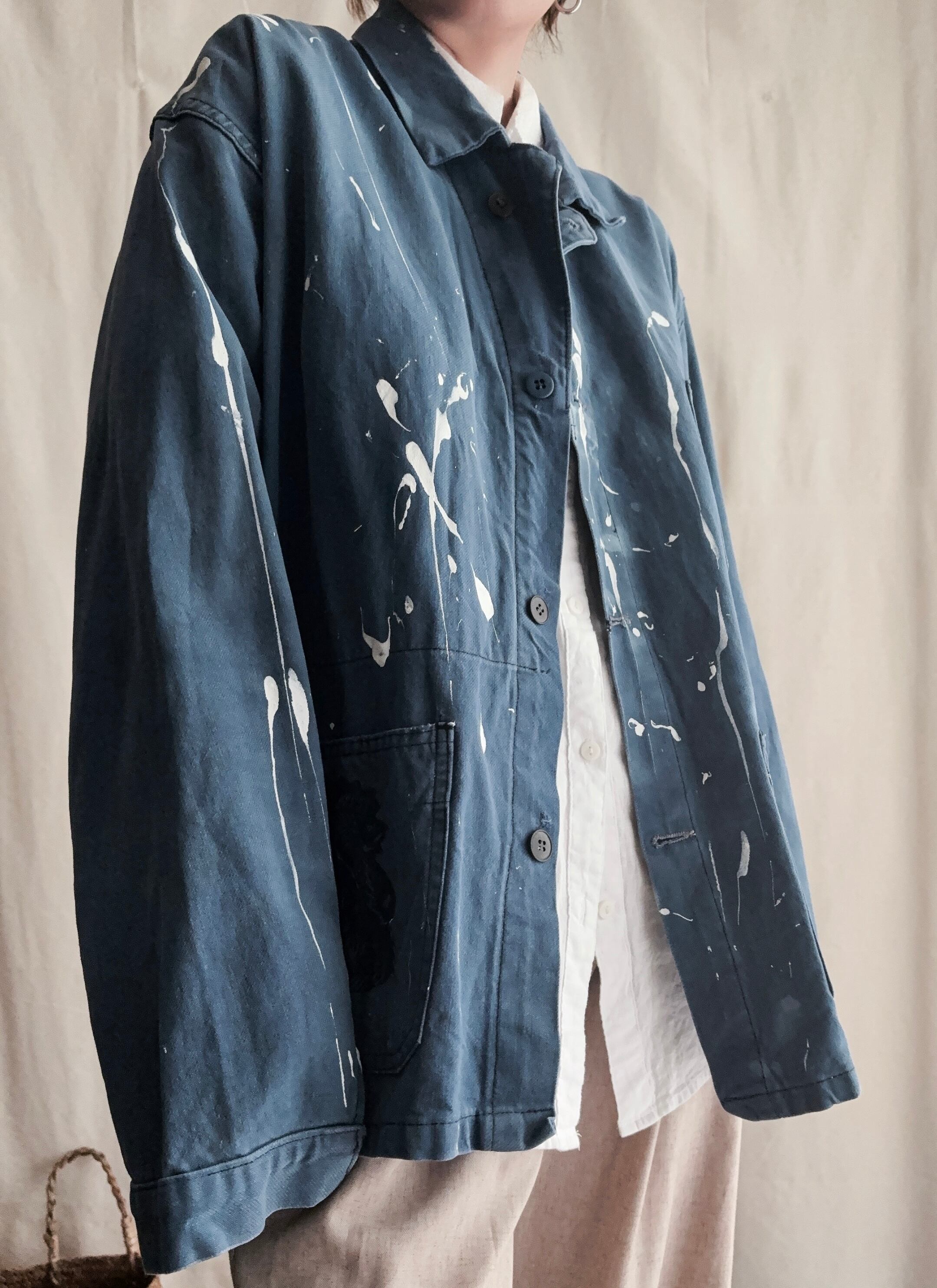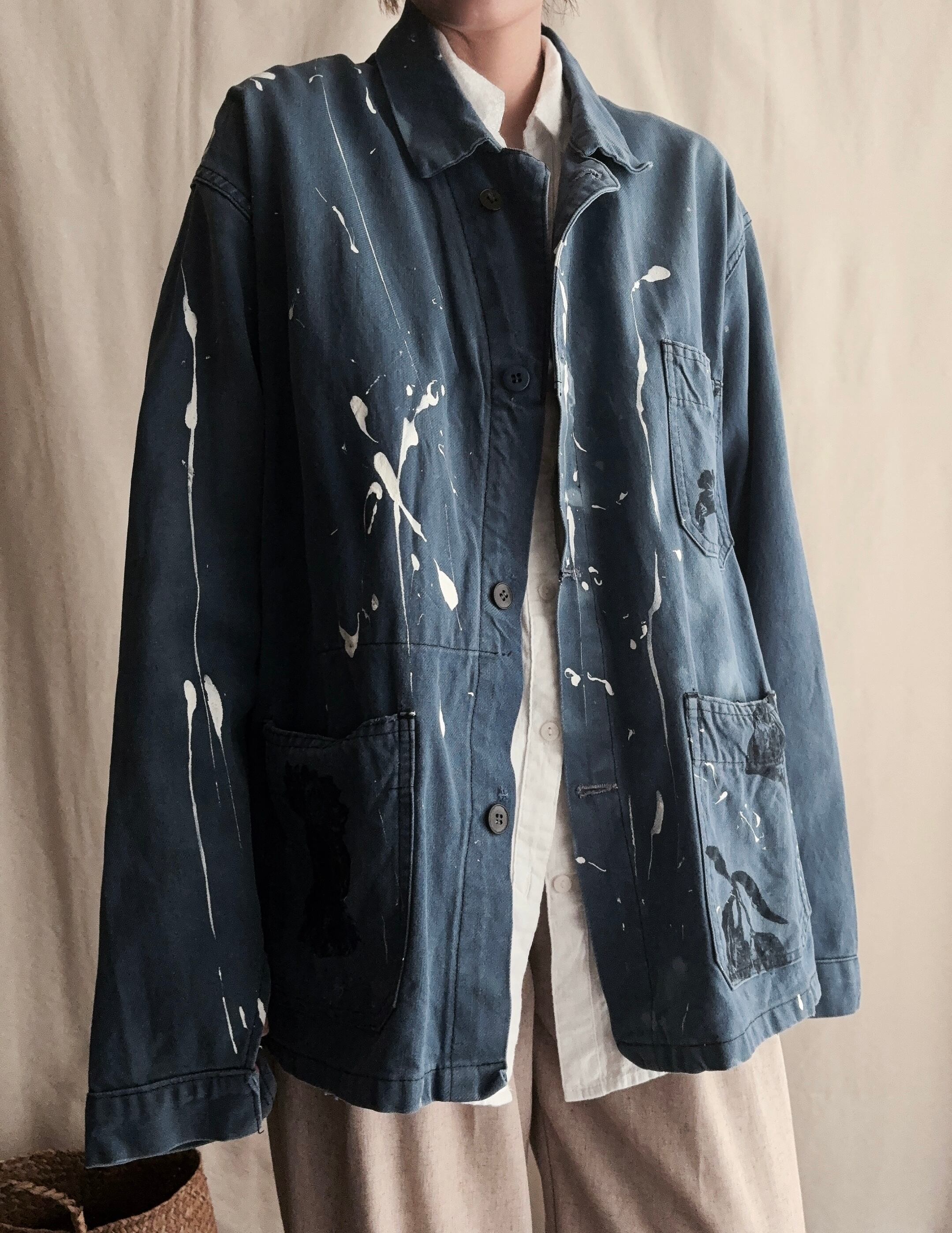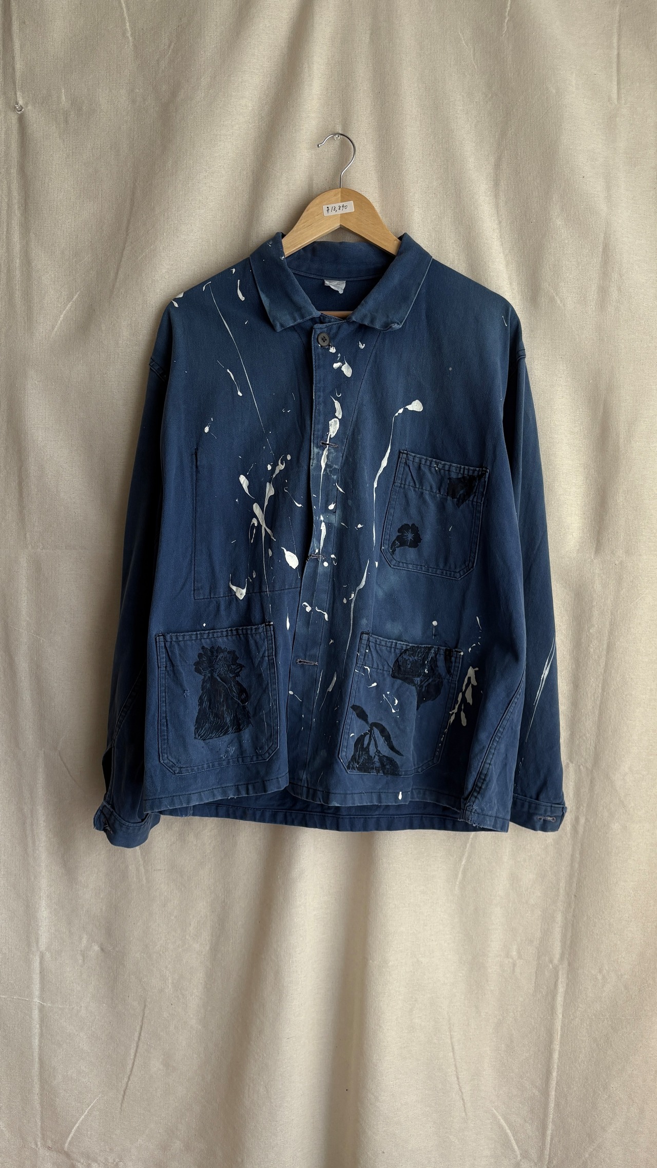 ヴィンテージジャケットに手彫りの版がプリントされてます