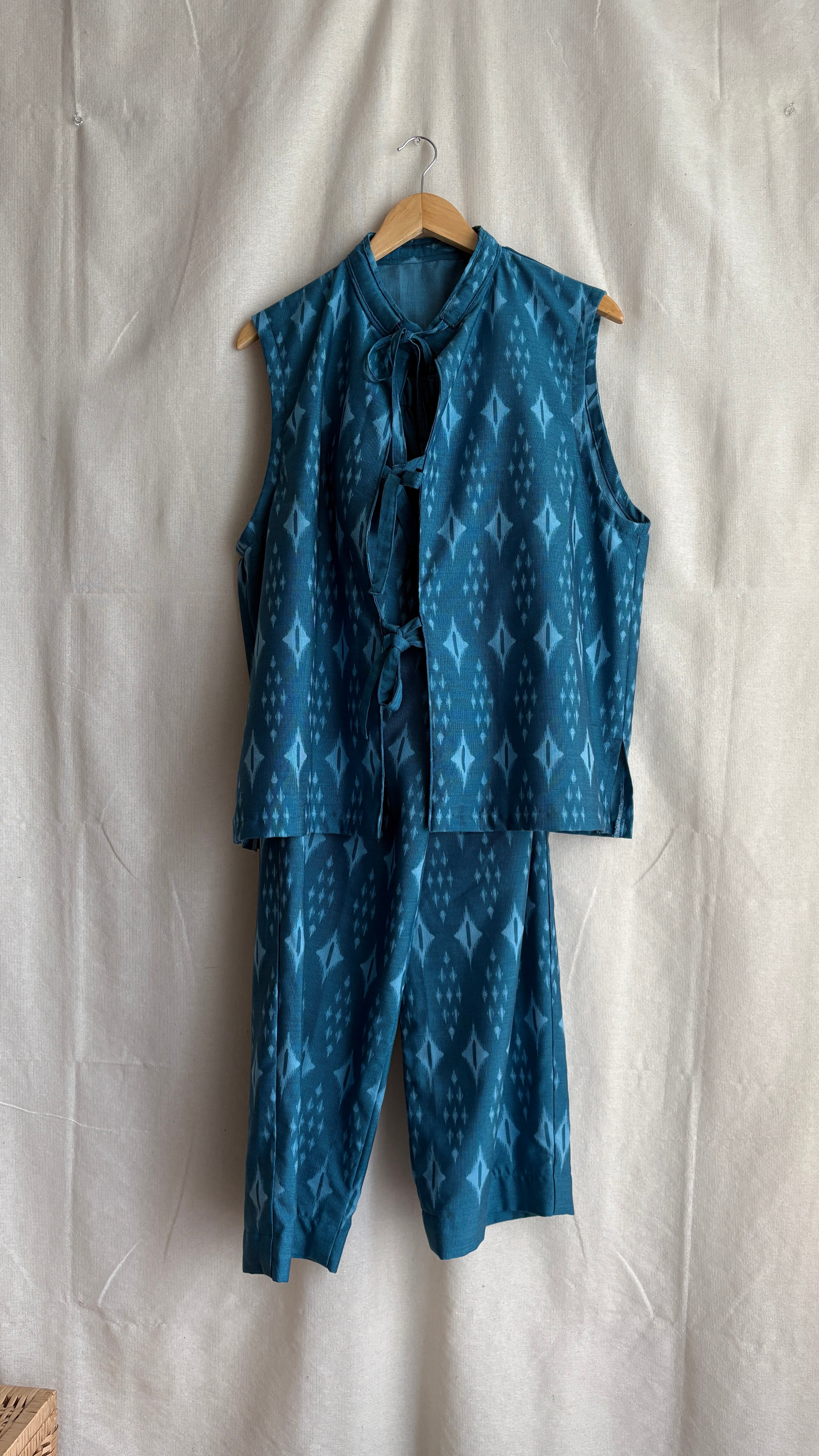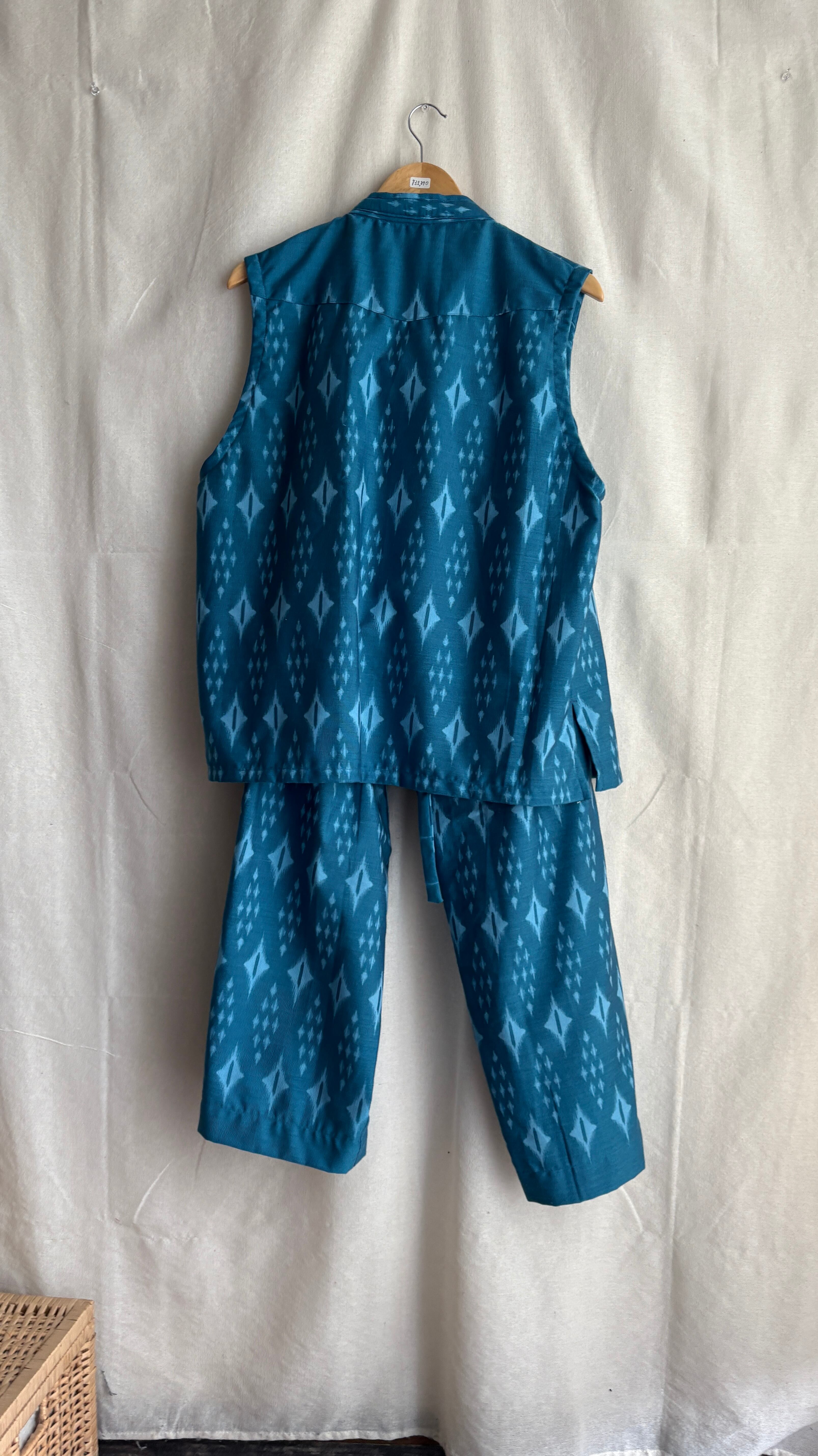 手織りのシルクコットン生地をセットアップに仕立てられてます。