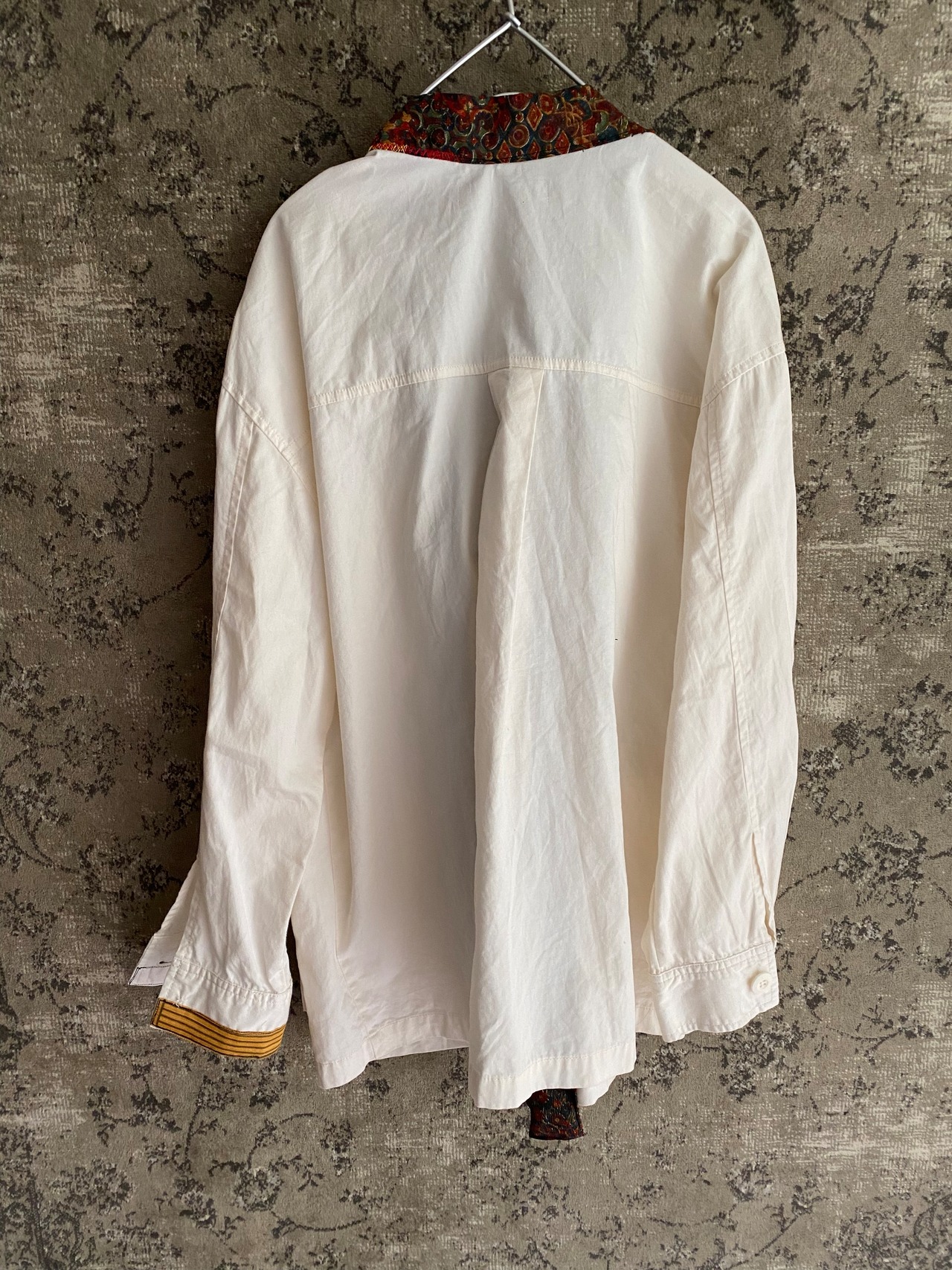 No.450スリーピングシャツジャケット羽織りヴィンテージレディースメンズオーバーサイズコットンリメイク着物ハンドメイドネルシャツ