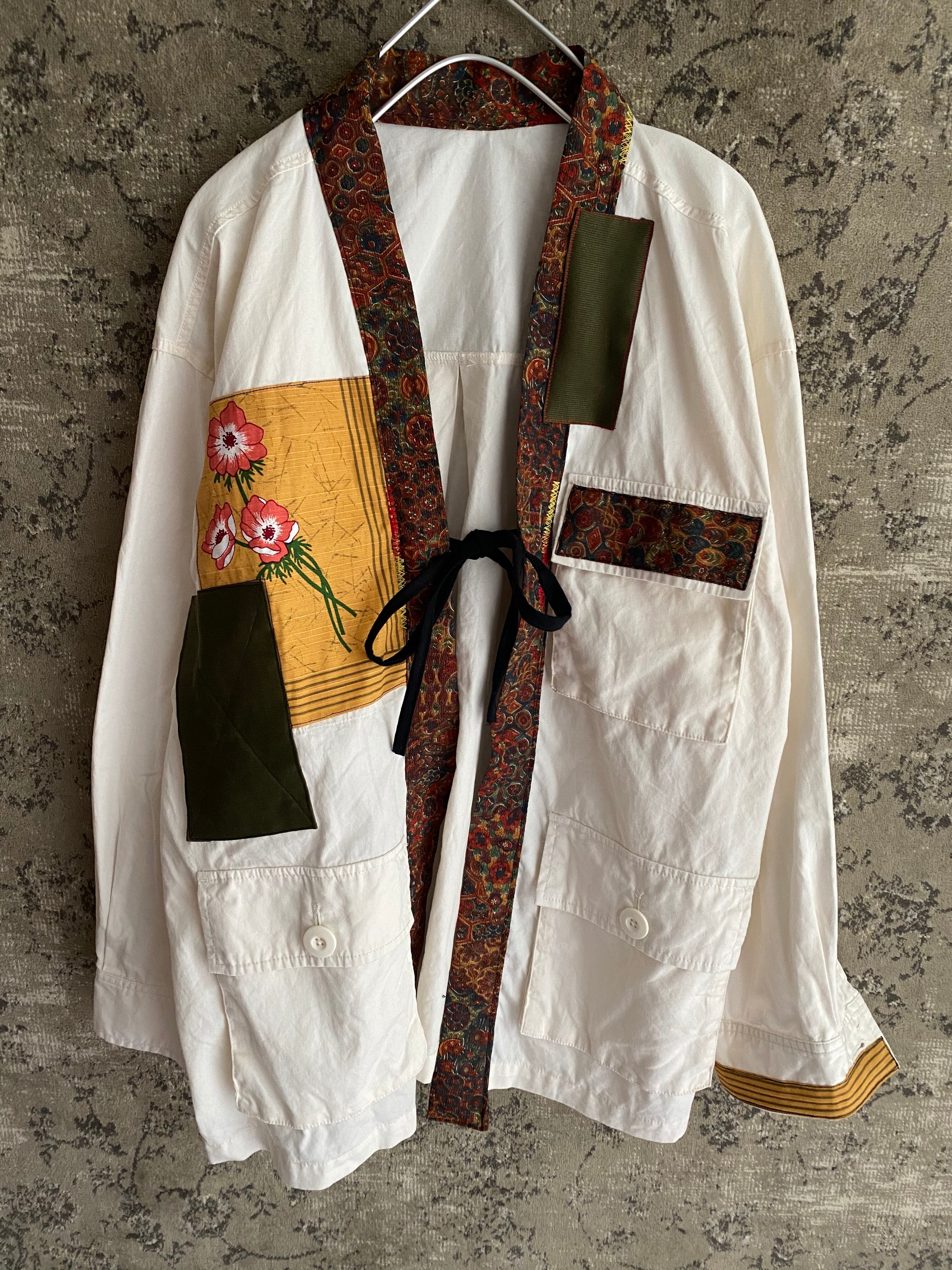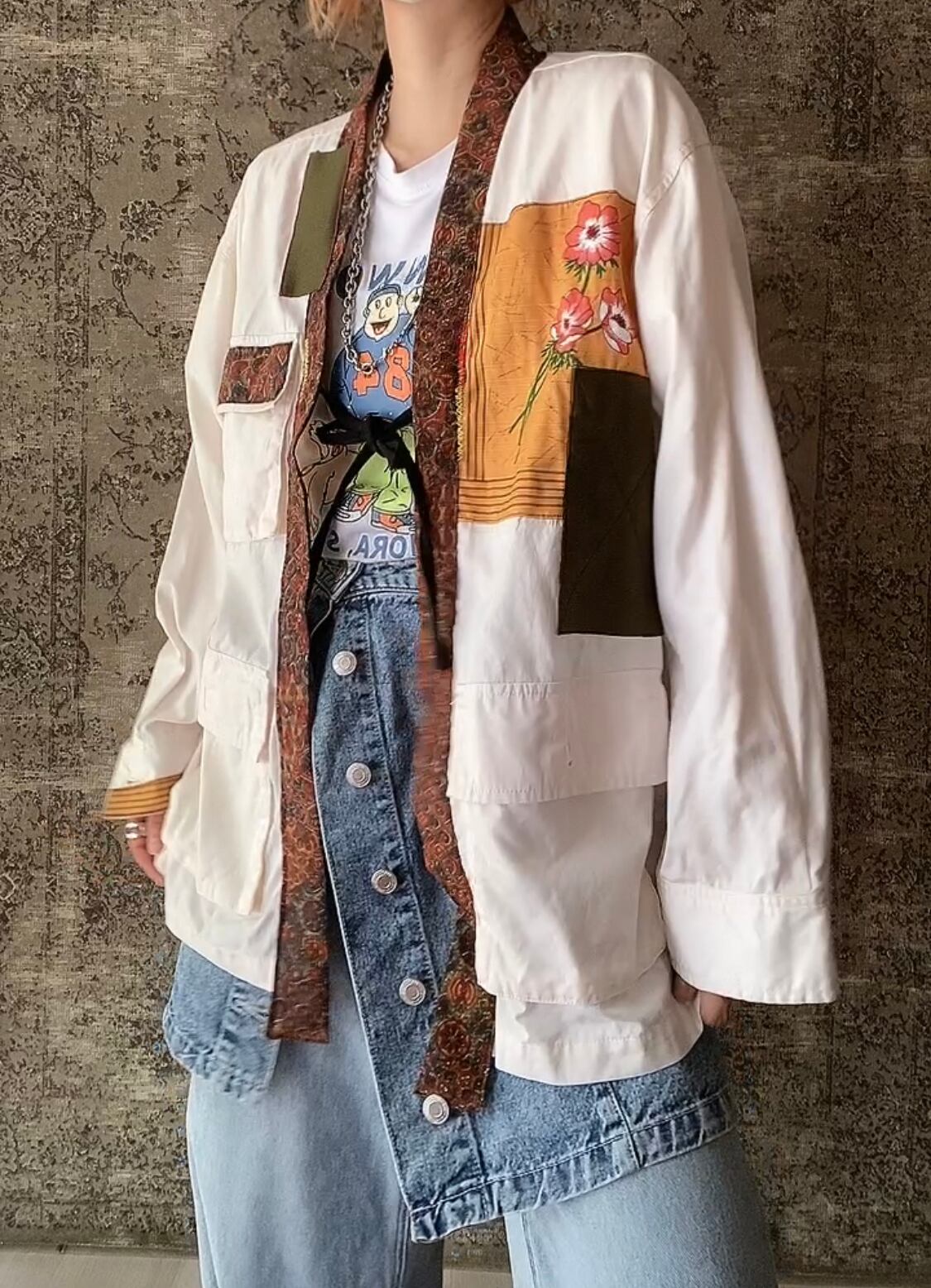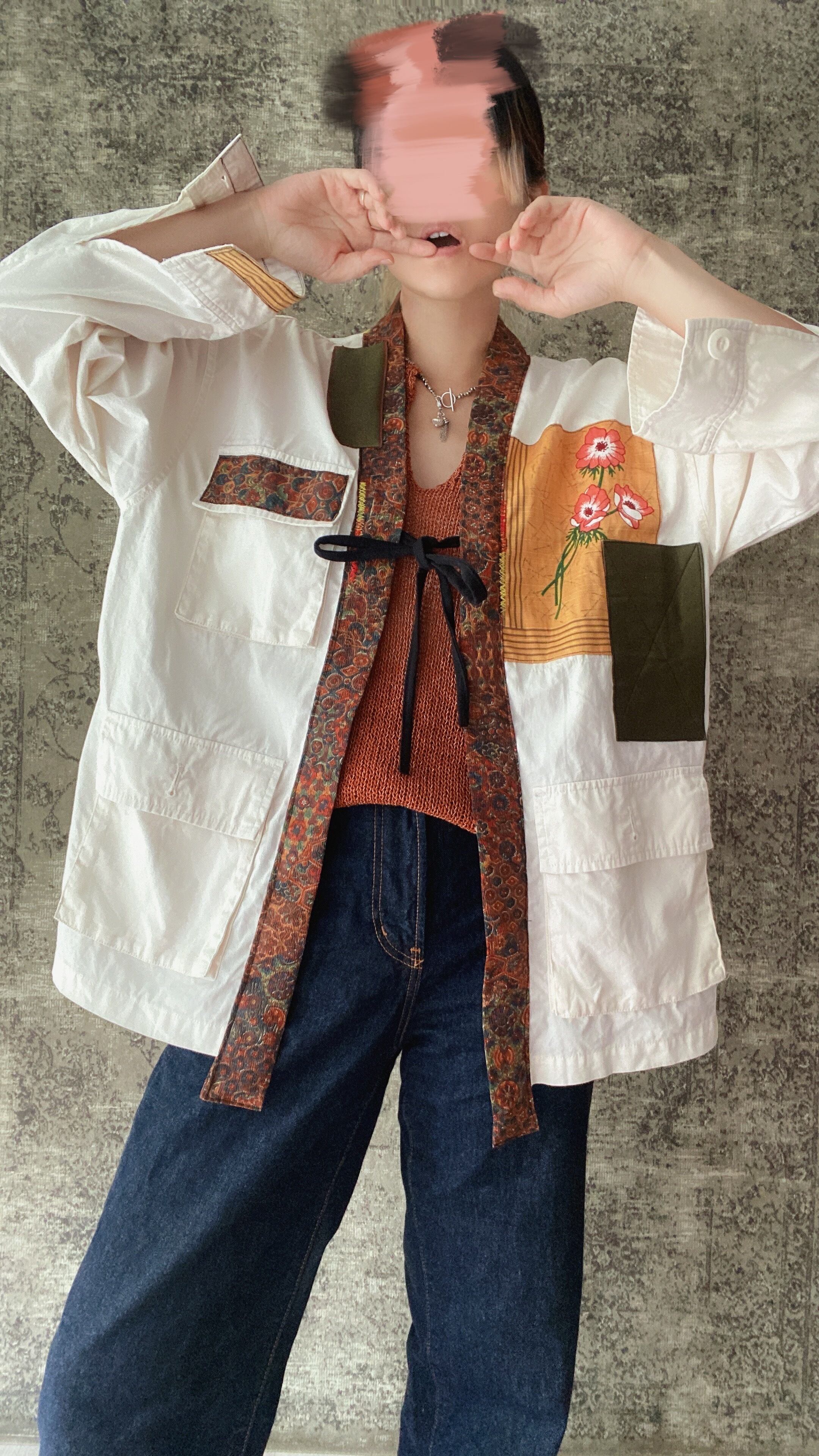 ミリタリージャケットとヴィンテージ着物を作家さんがリメイクした作品になります!
