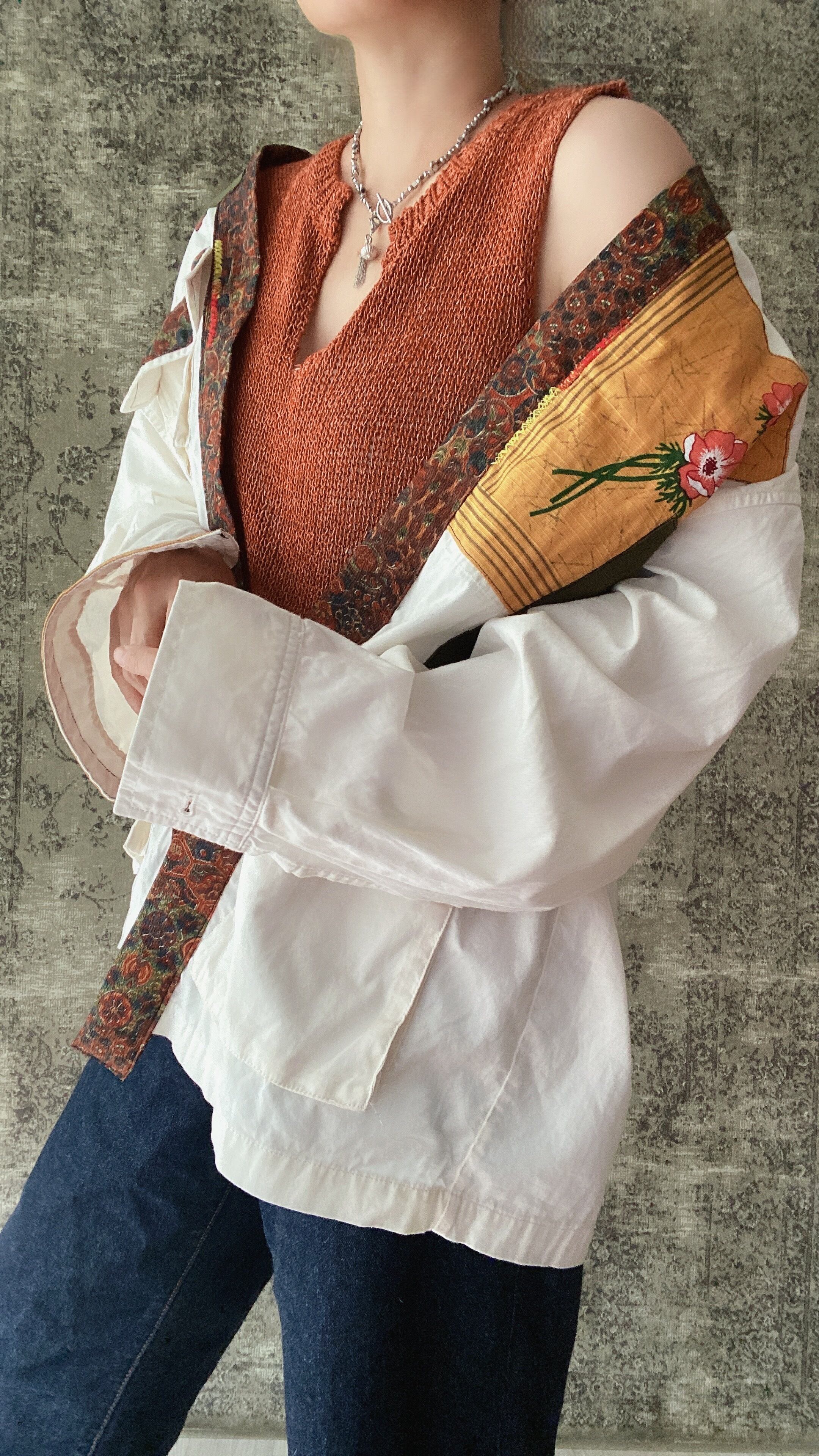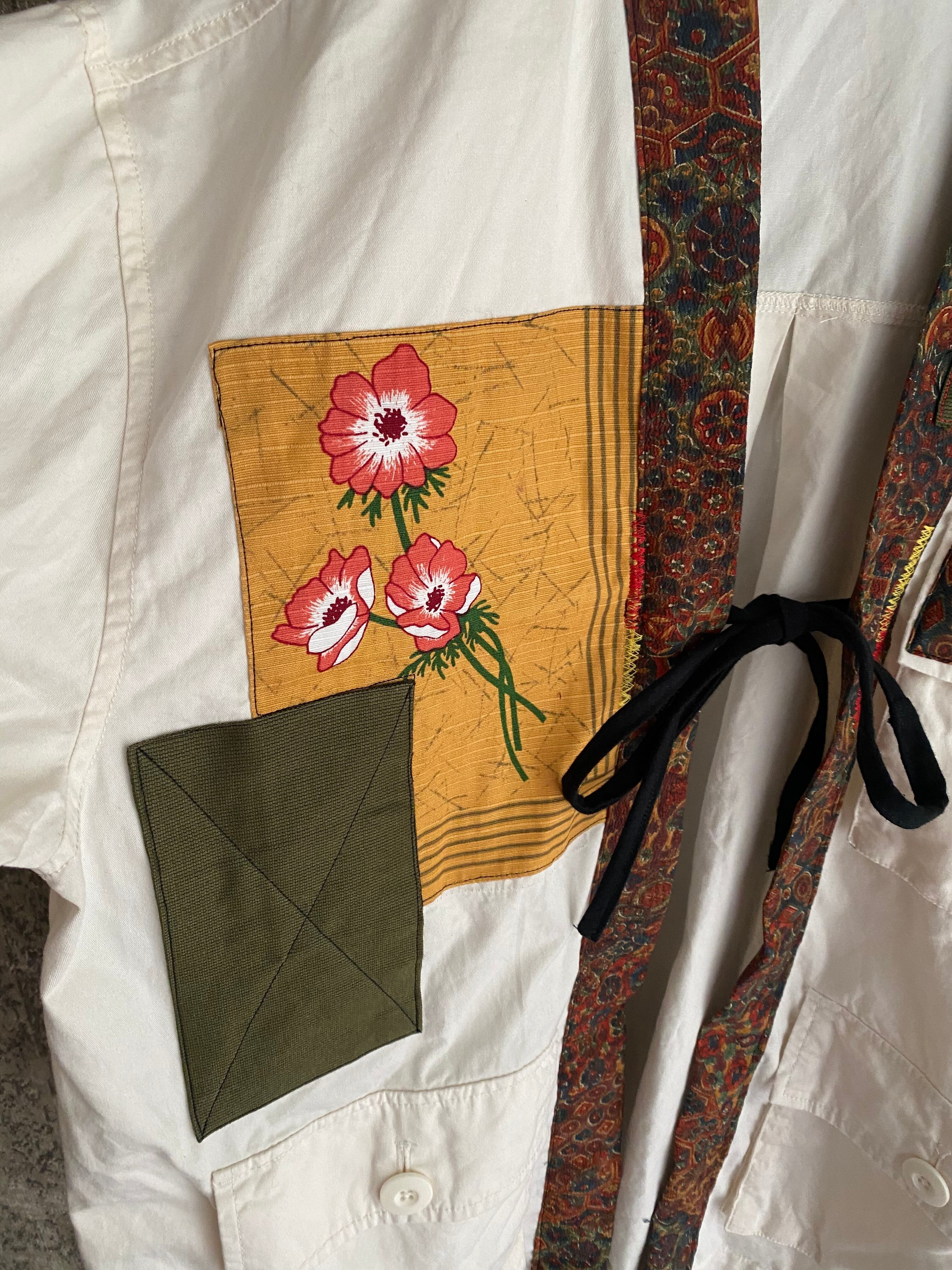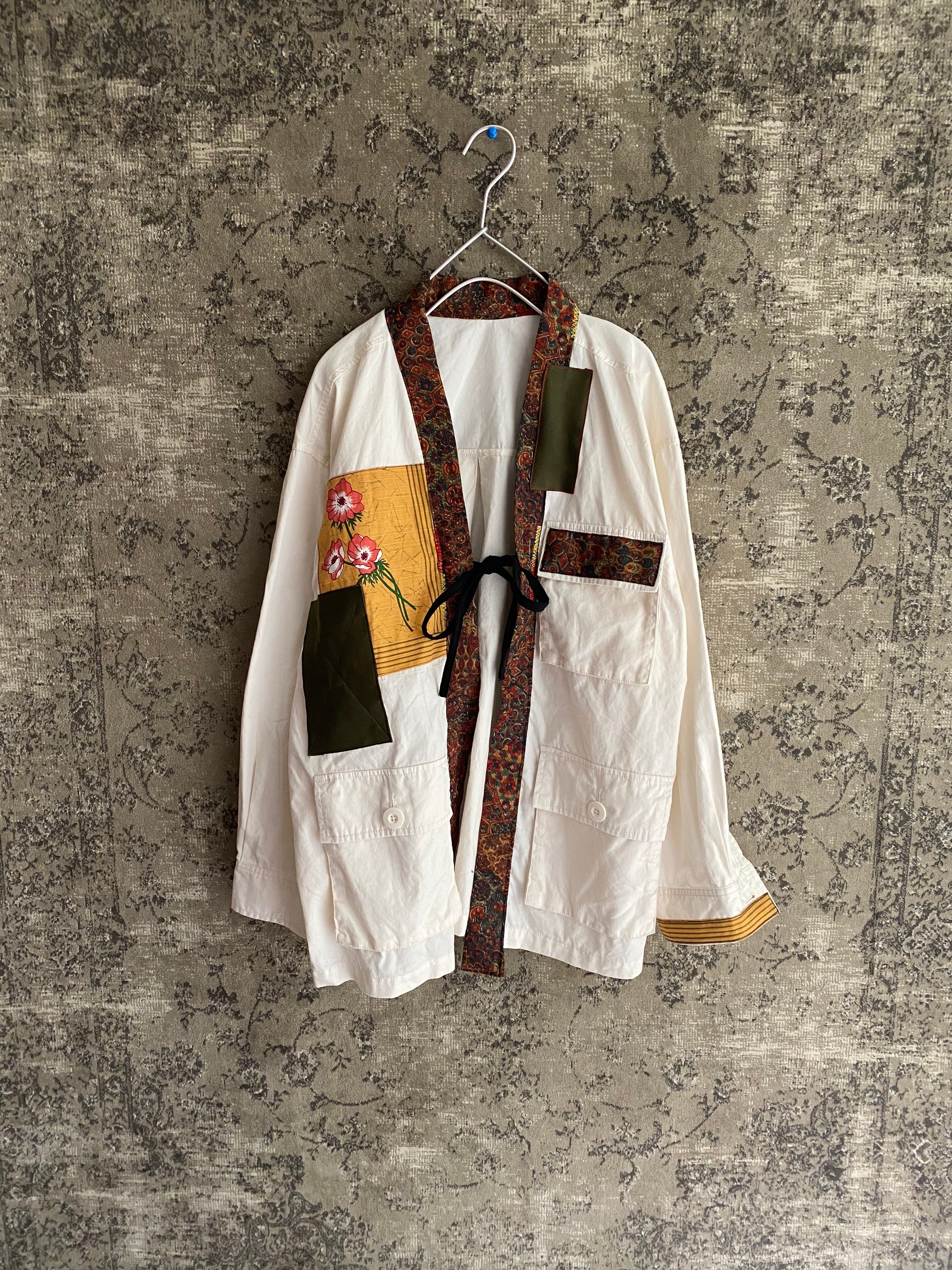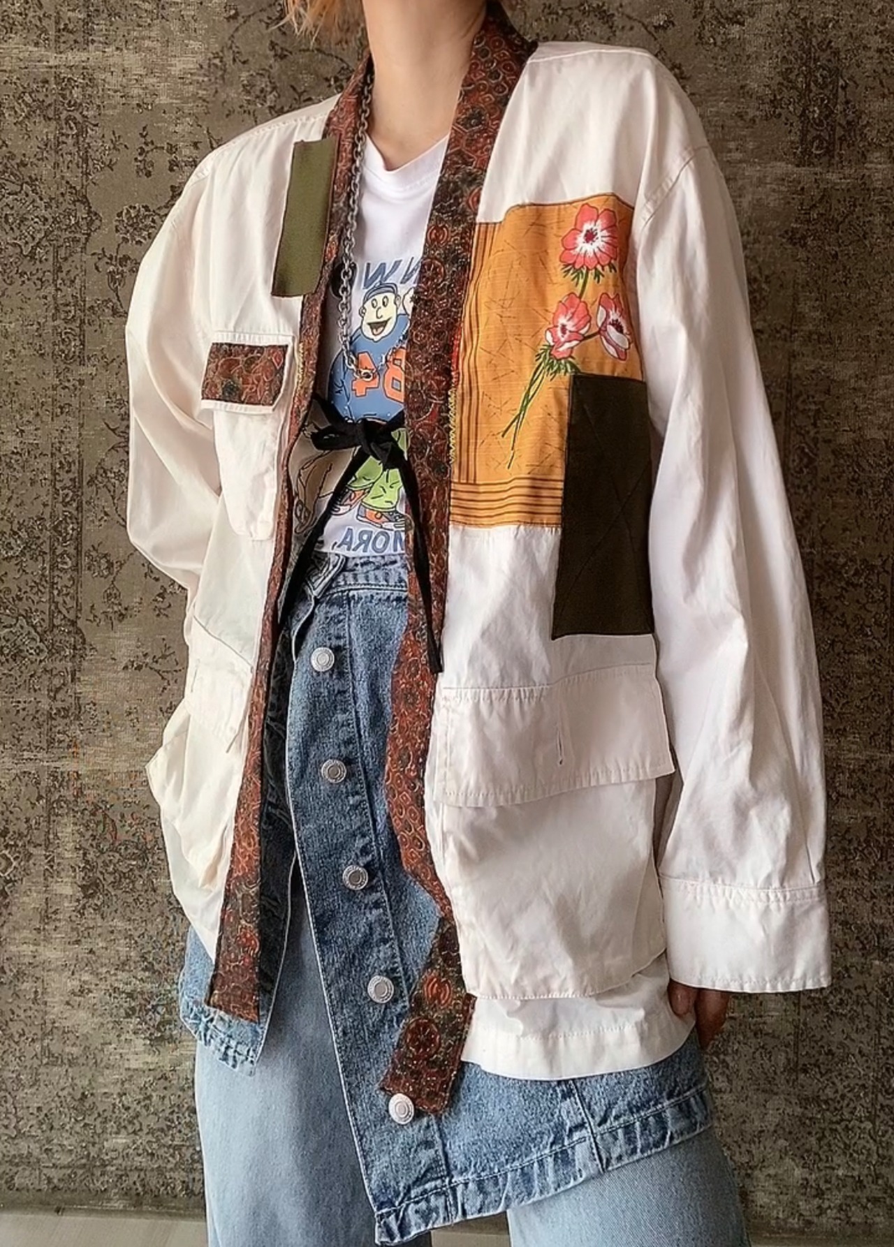 ミリタリージャケットとヴィンテージ着物を作家さんがリメイクした作品になります!