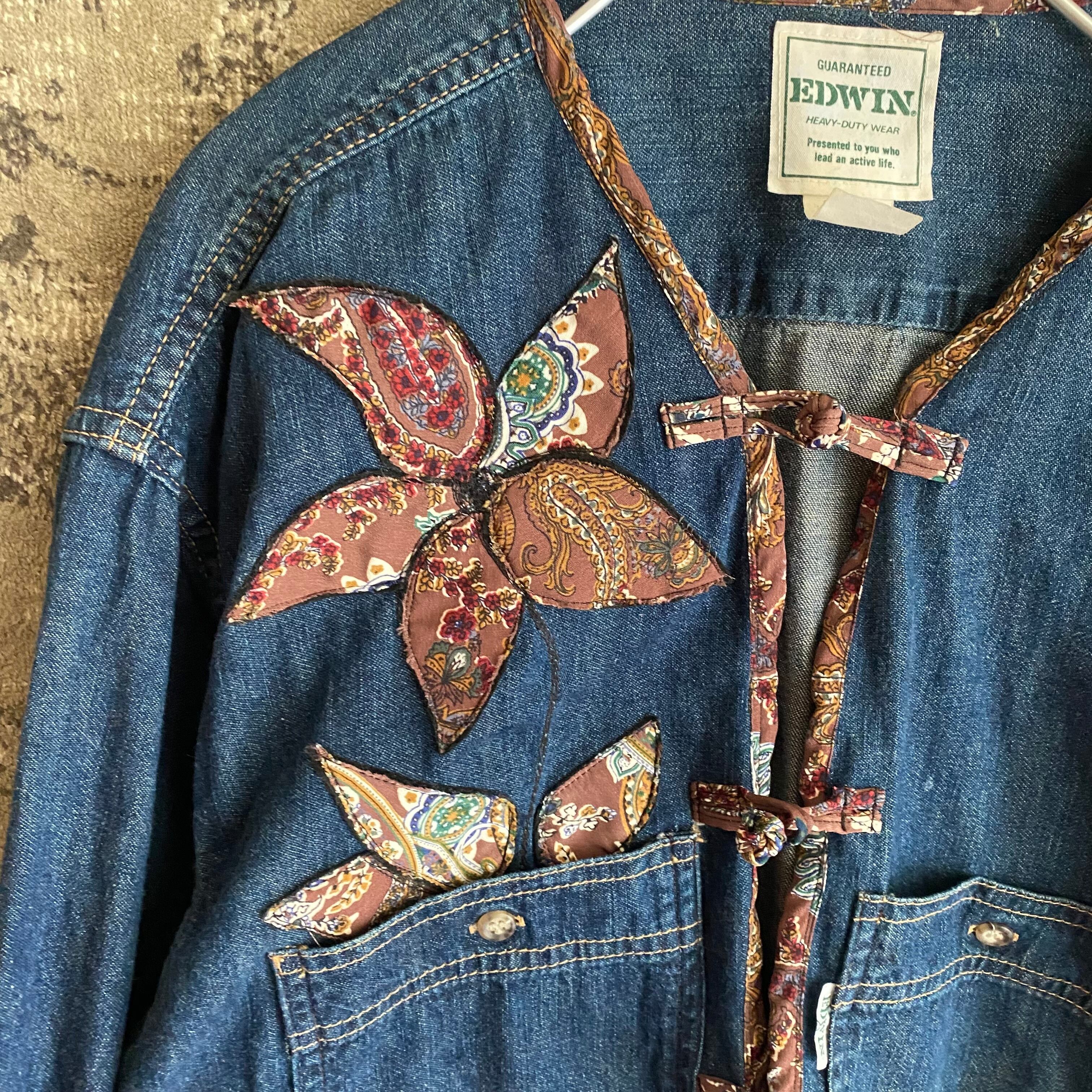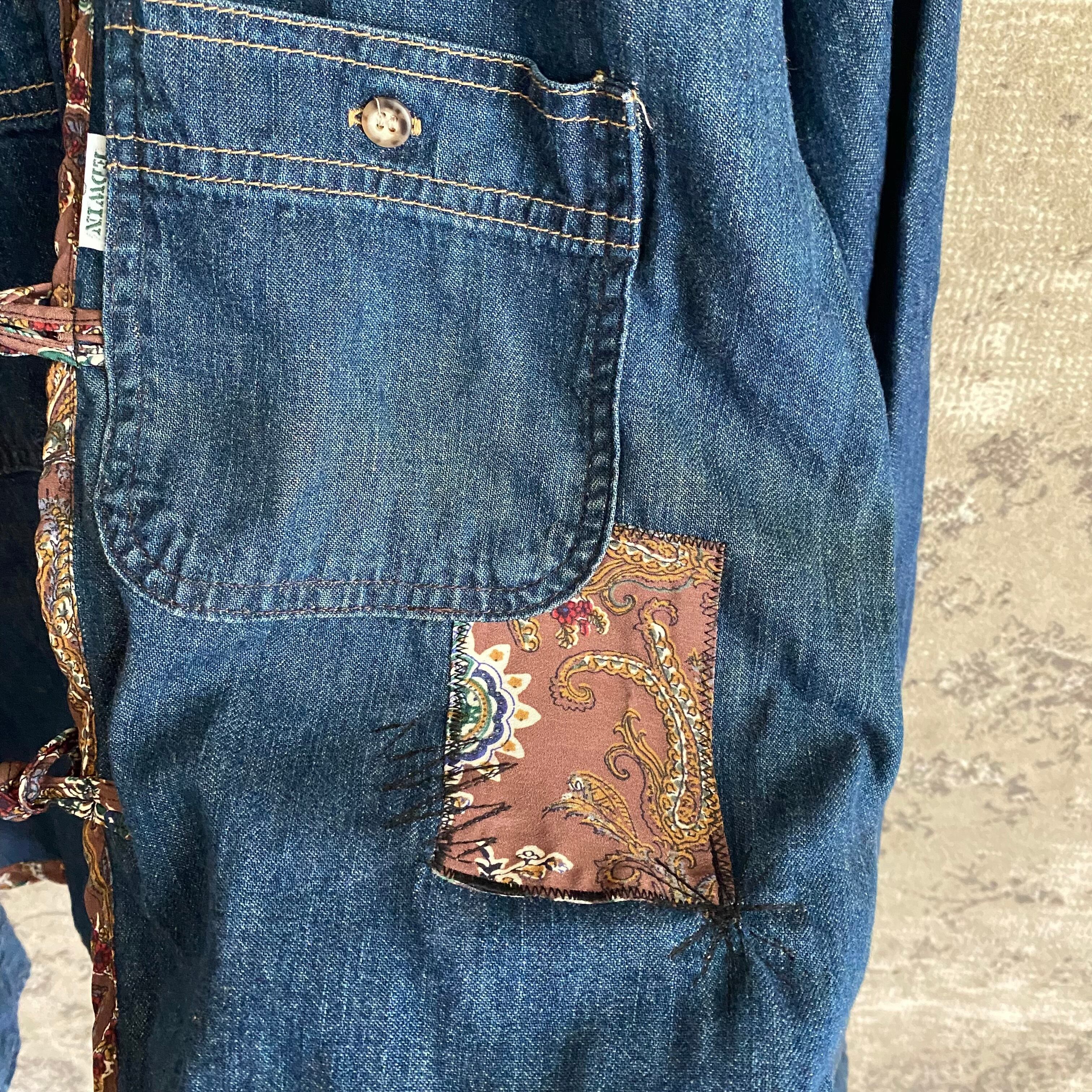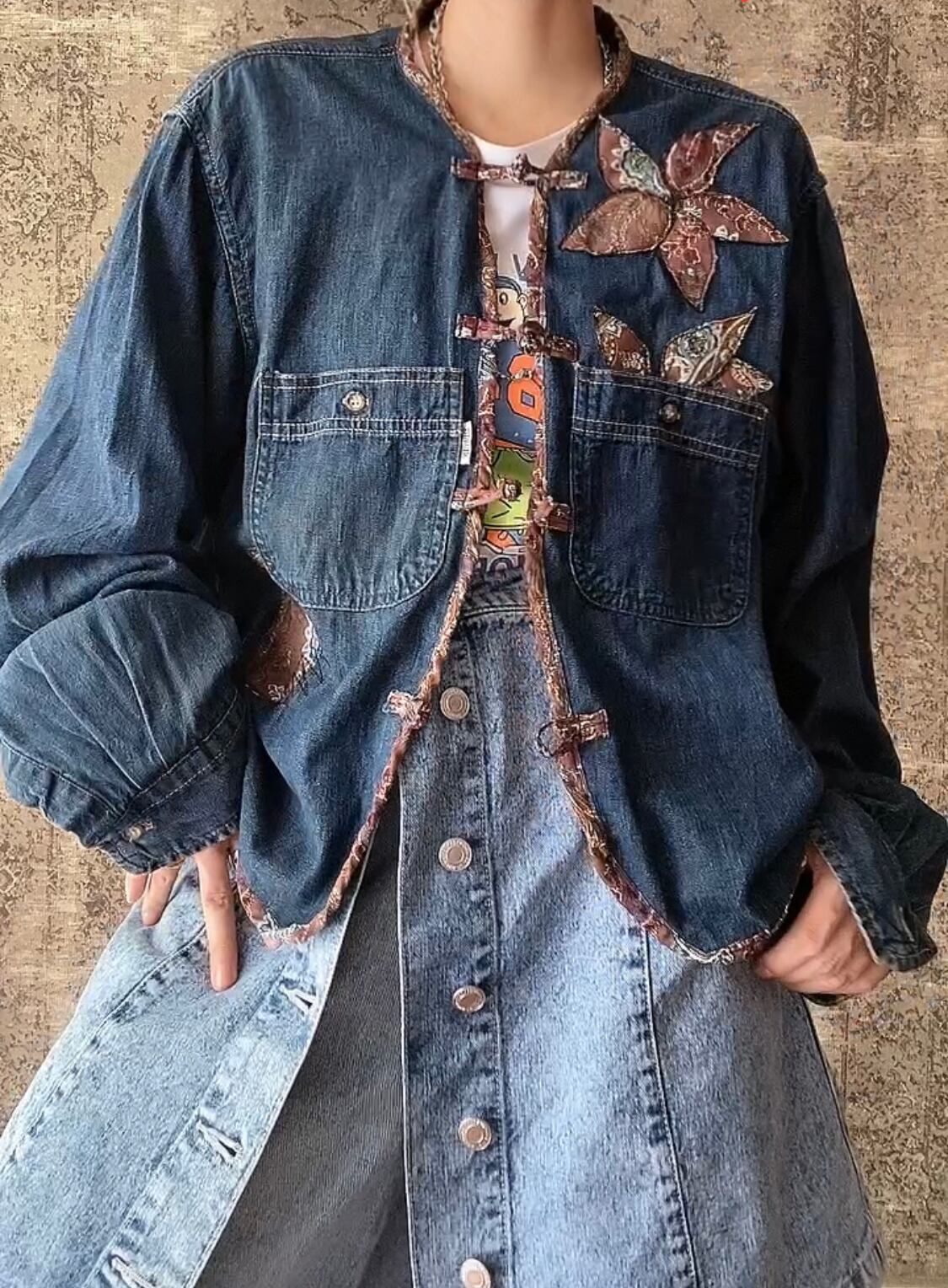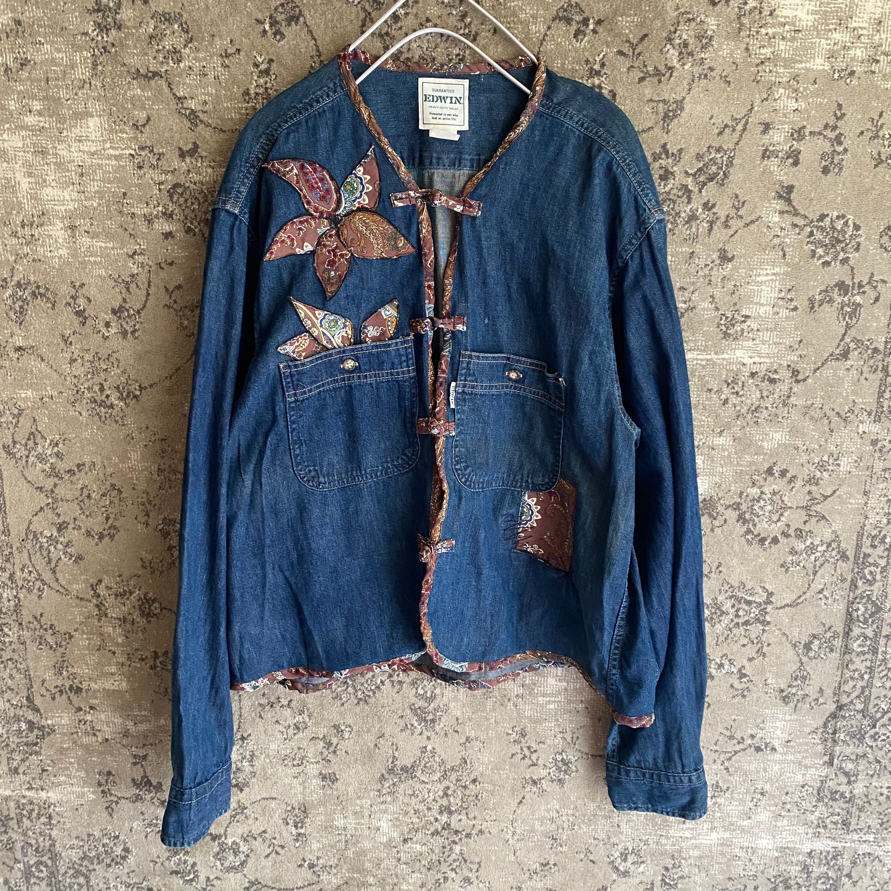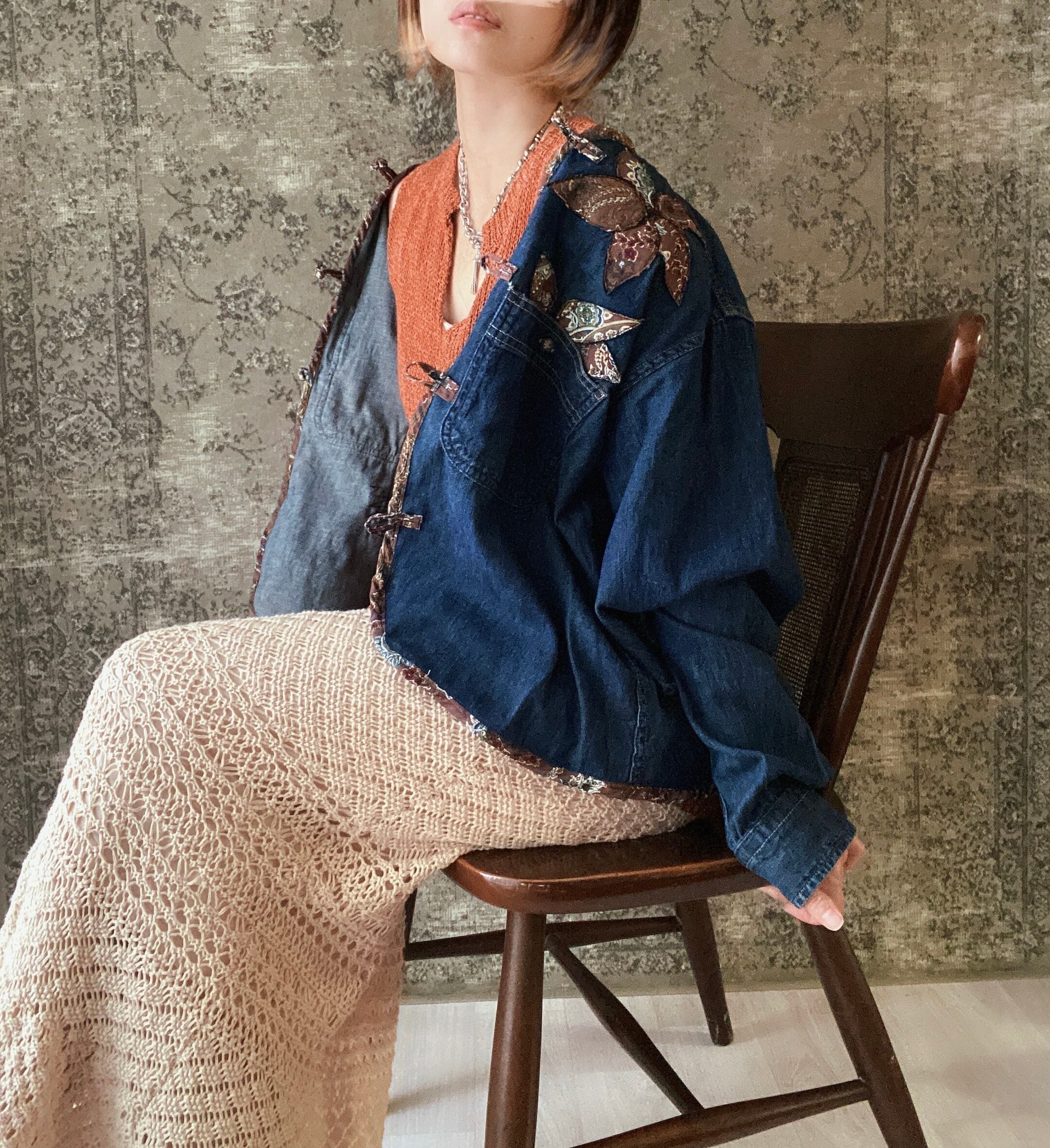 No.415ネルシャツスリーピングシャツデニムシャツパッチワーク花柄チャイナシャツブラウスジャケットコットンヴィンテージ古着レディースメンズ