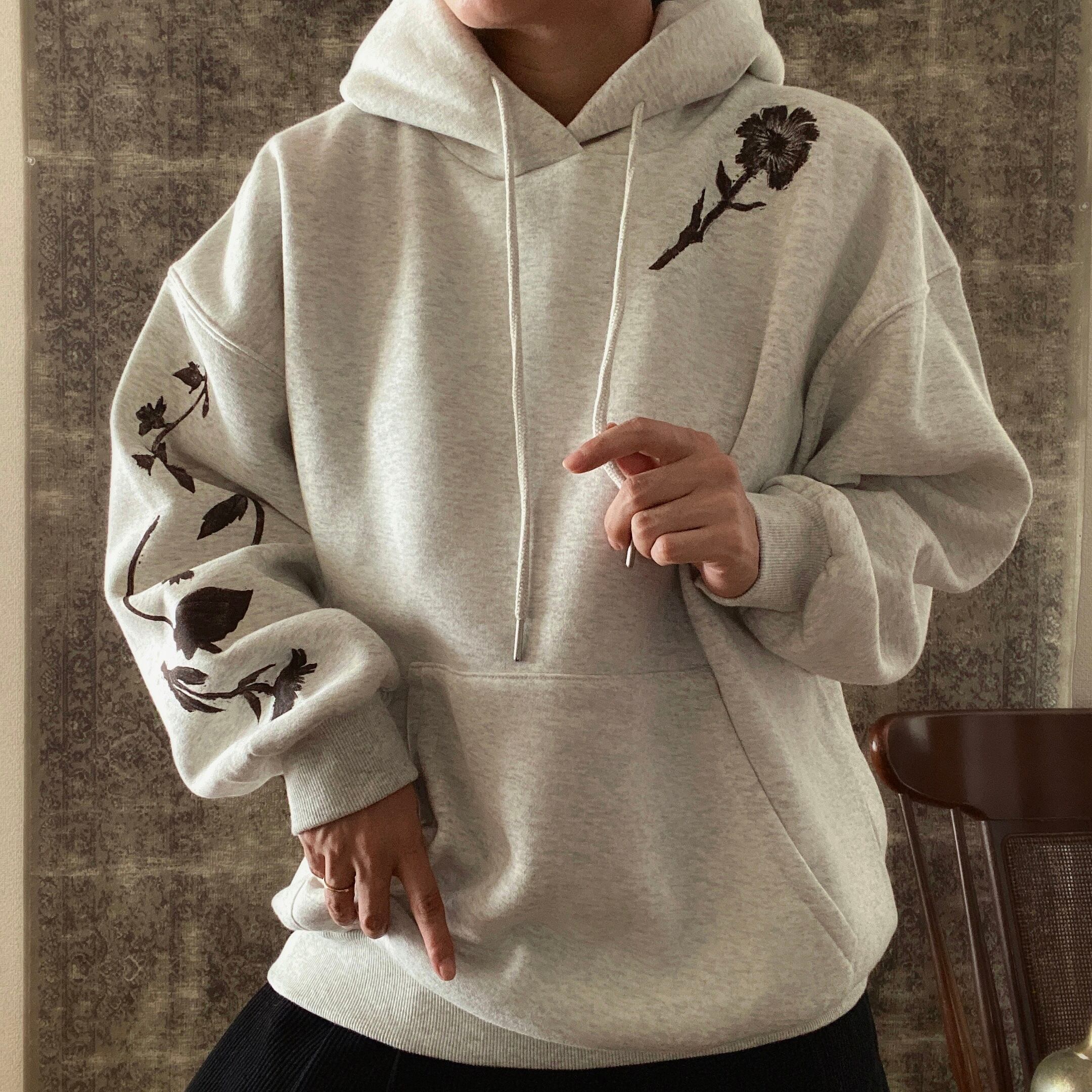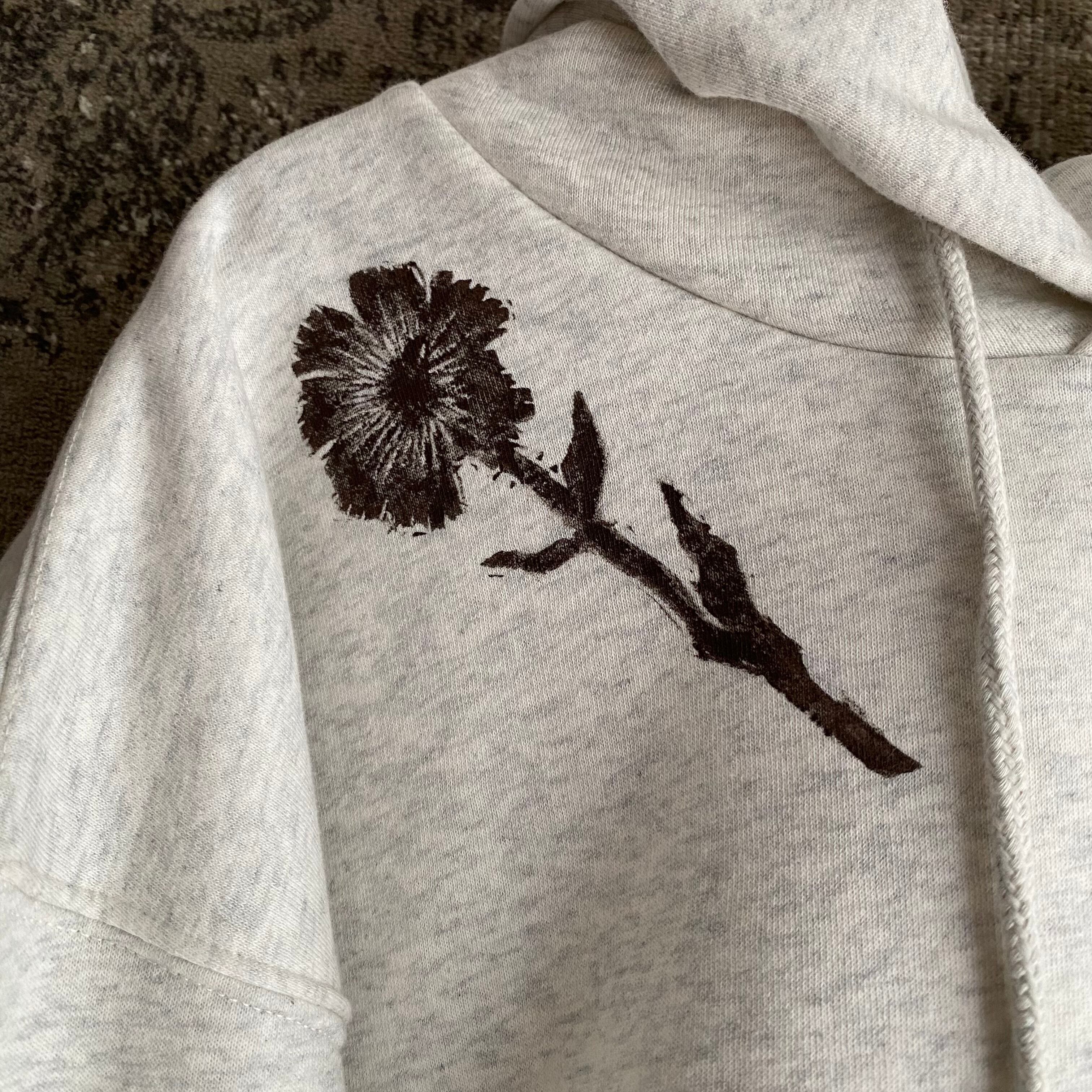 アーティストの作品で沖縄の自然や動物、ハヂチなどを一つ一つ手彫りで彫った版を専用のインクを付けて古着に版を押されてます