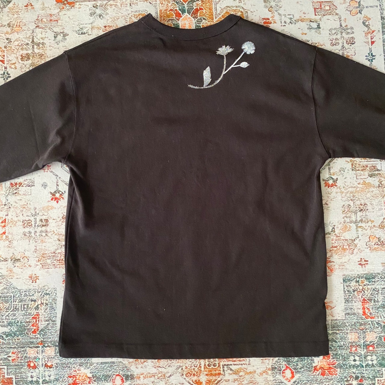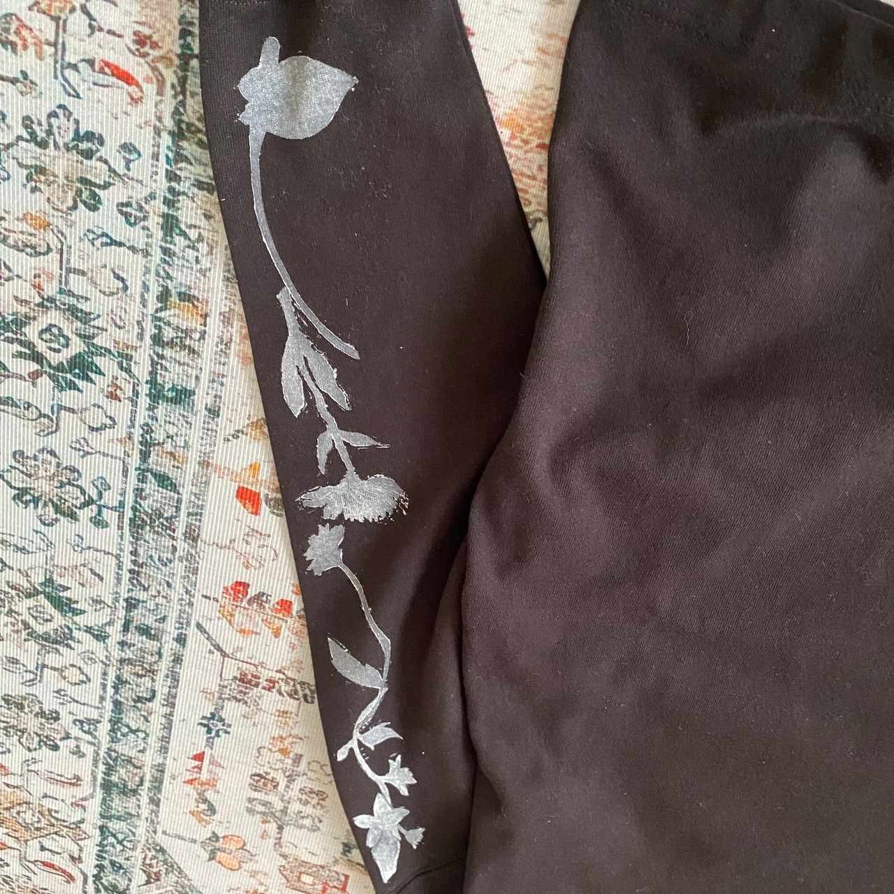ロングTシャツロンT花柄コットン綿ブロックプリント黒ブラック