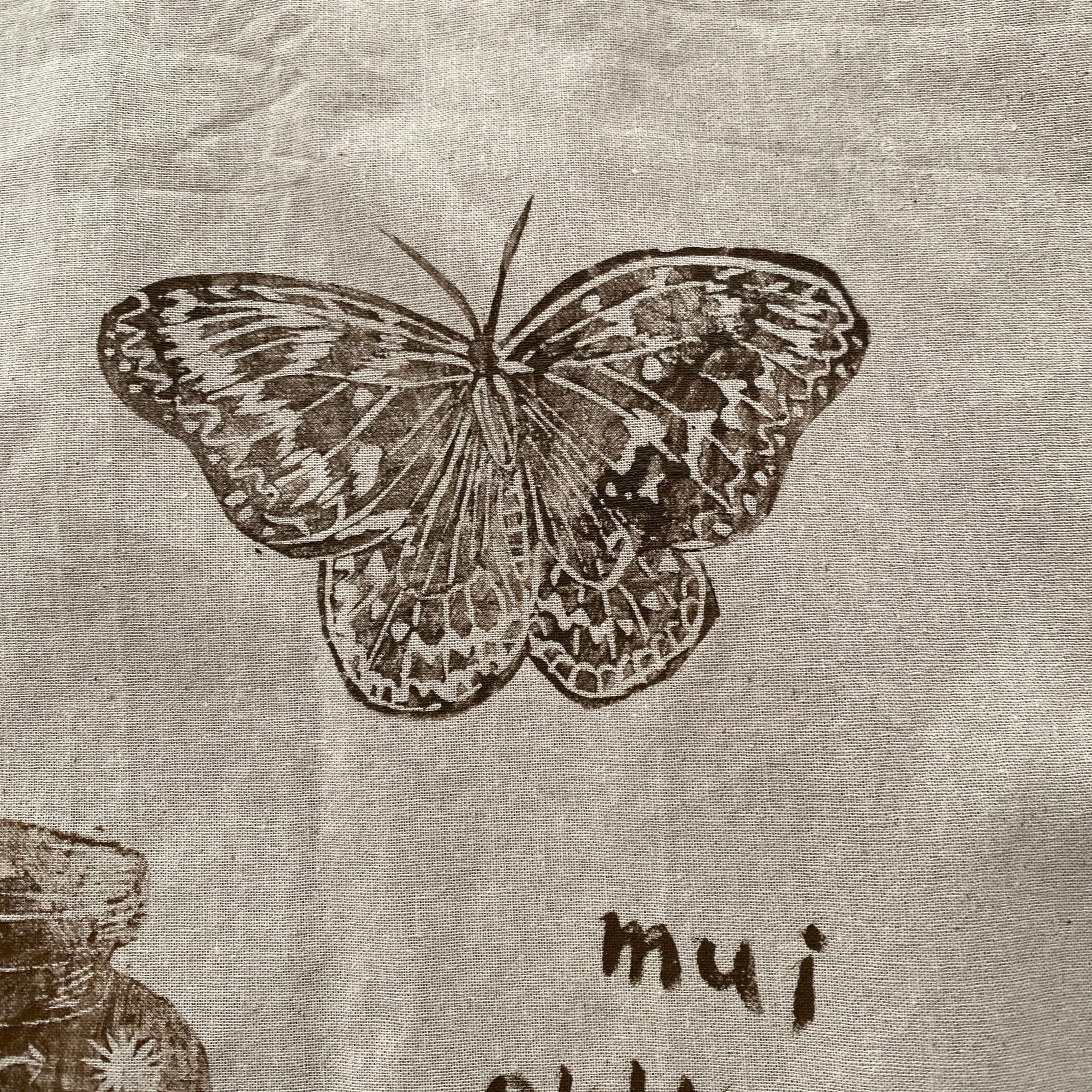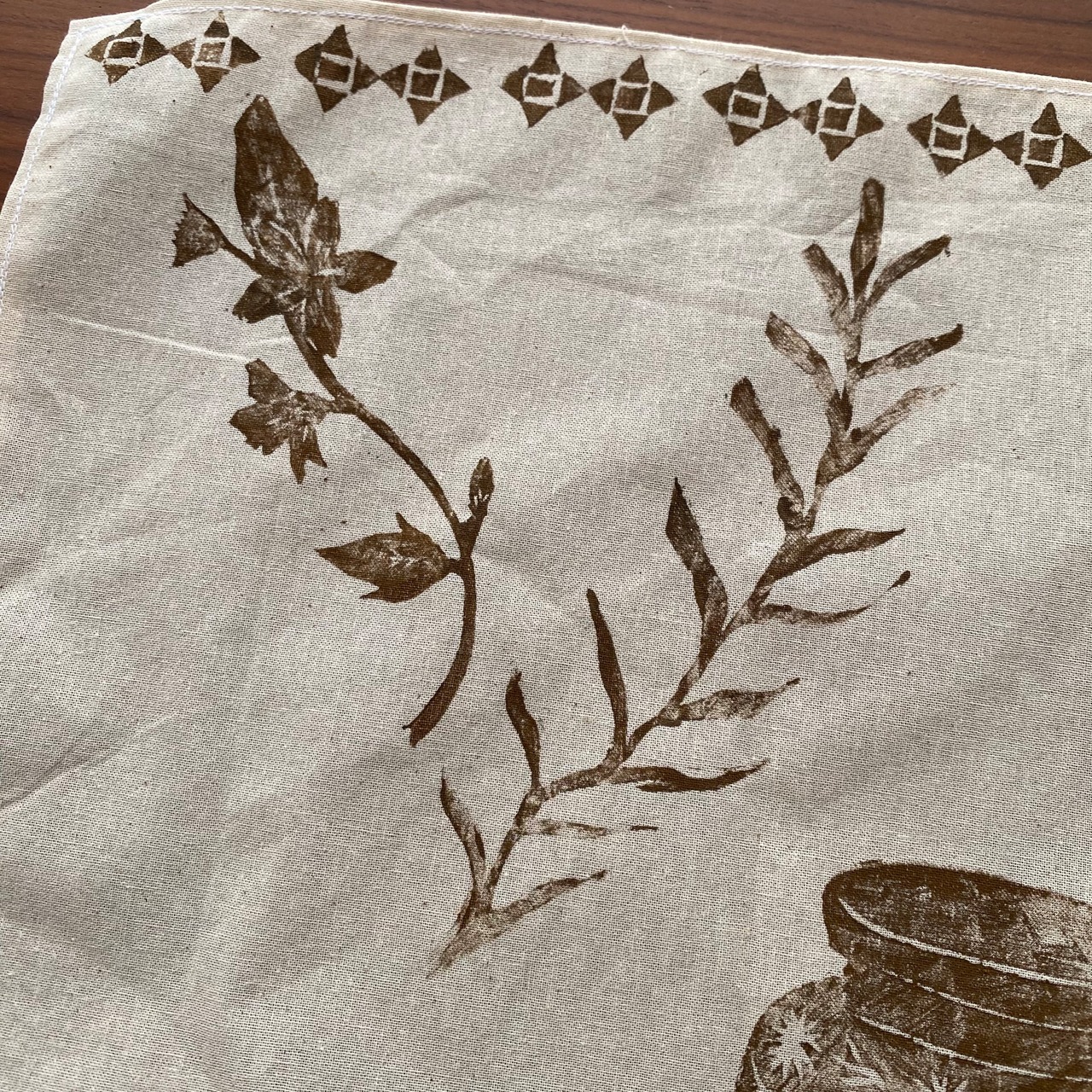 琉球の自然や動物、古陶をモチーフに版を彫って押されてます