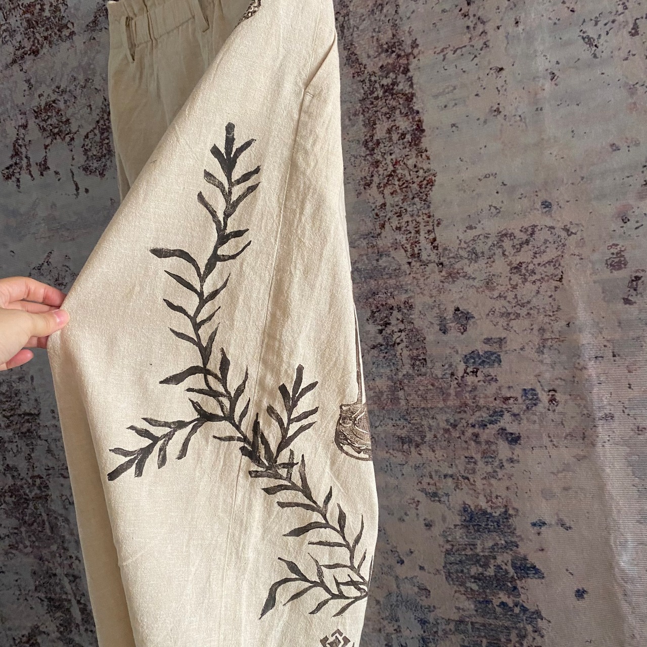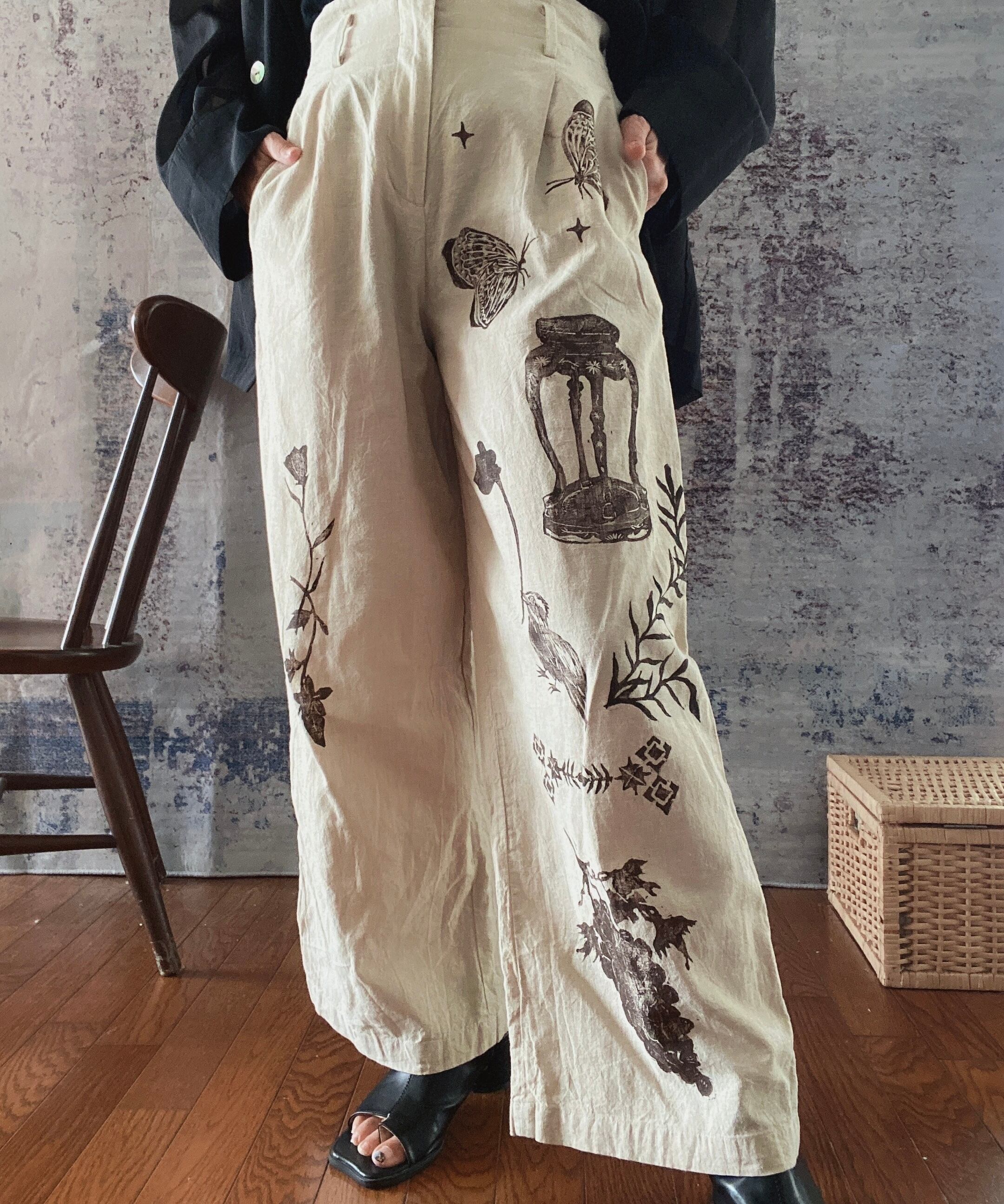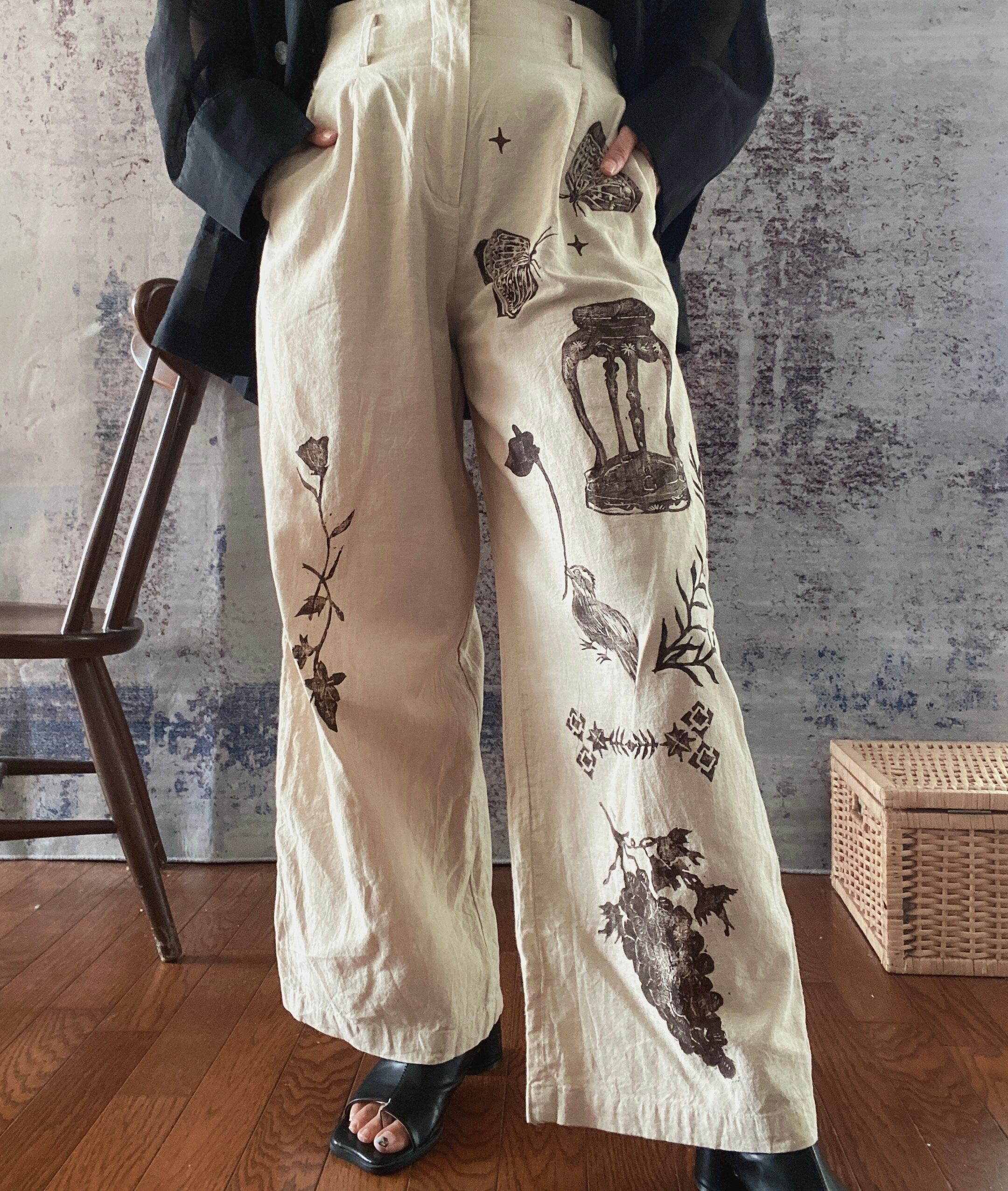コットン綿リネンブロックプリントハンドプリントパンツレディース