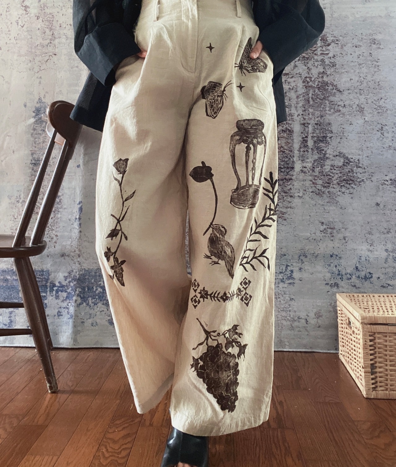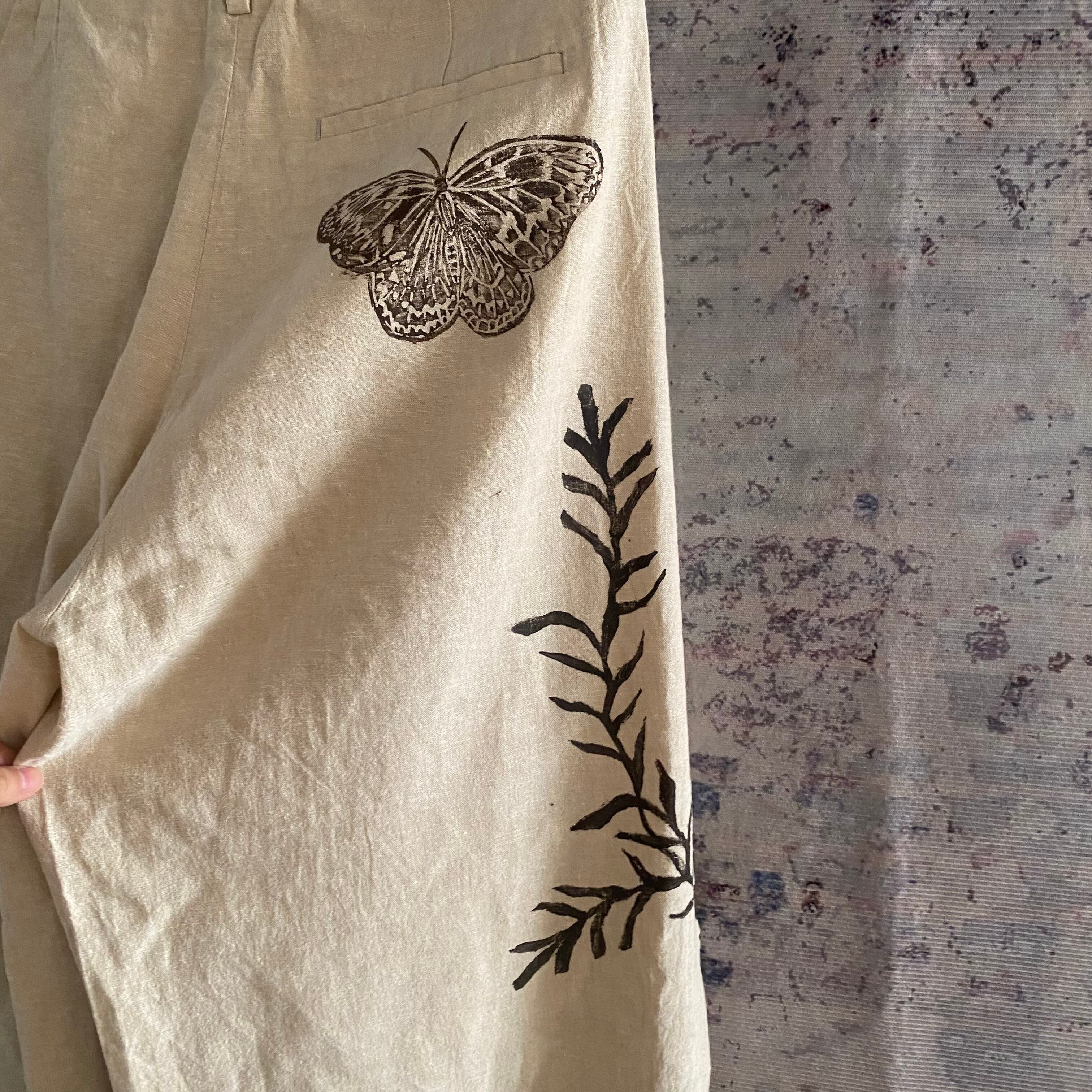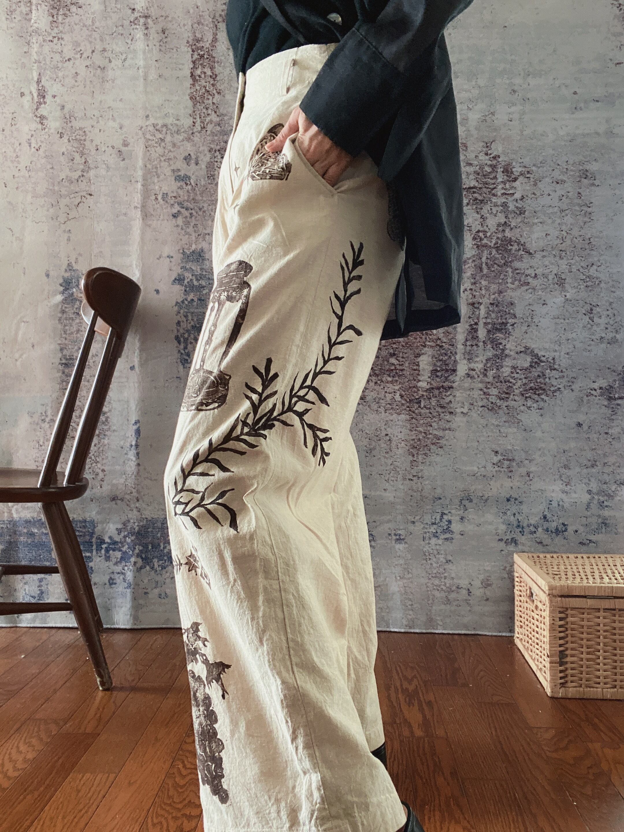 コットン綿リネンブロックプリントハンドプリントパンツレディース