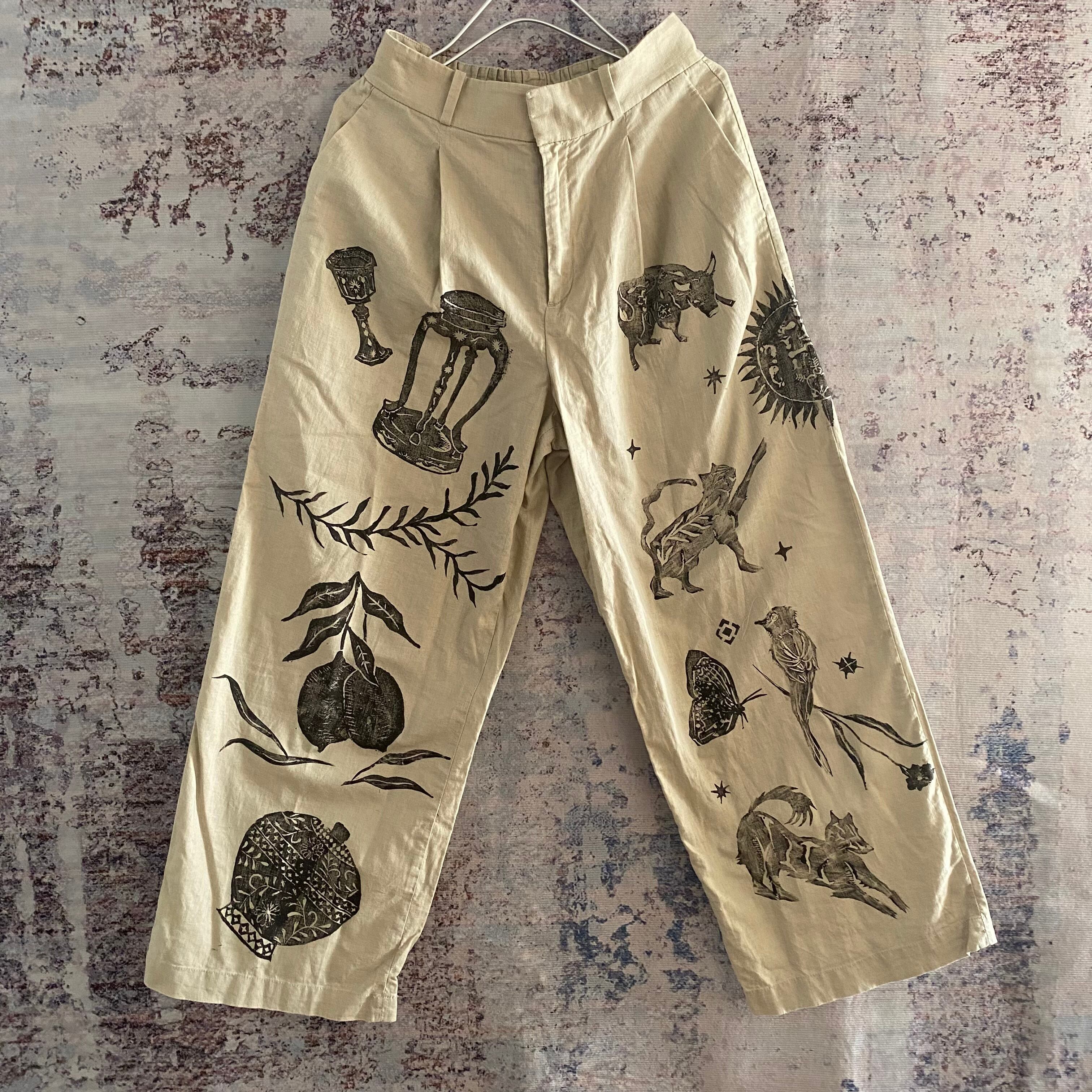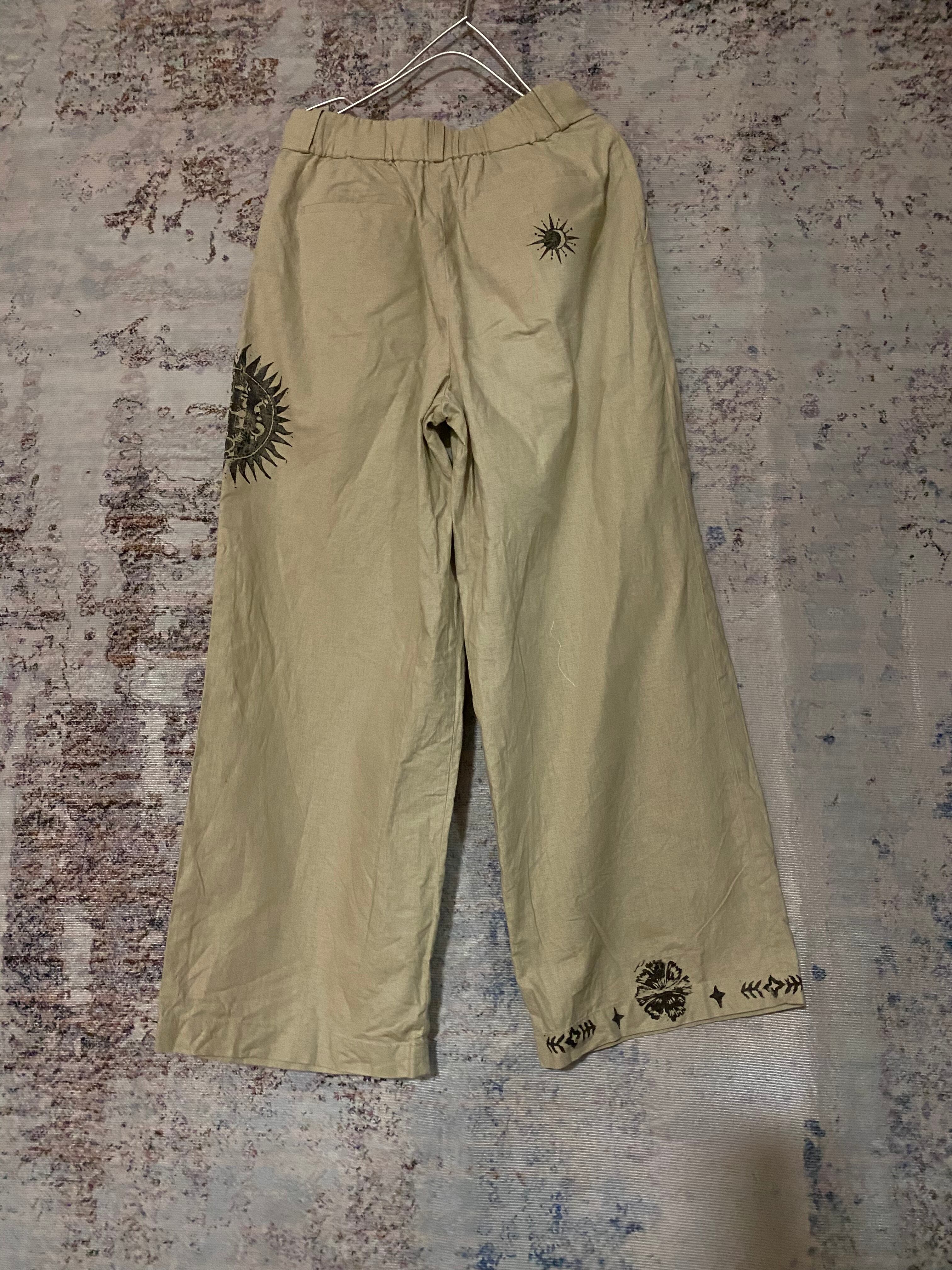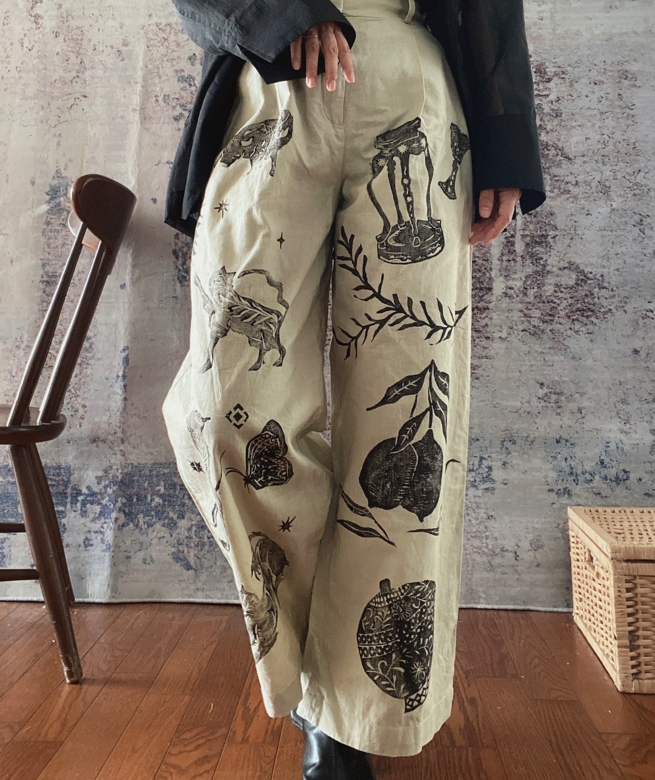 コットン綿リネンブロックプリントハンドプリントパンツレディース