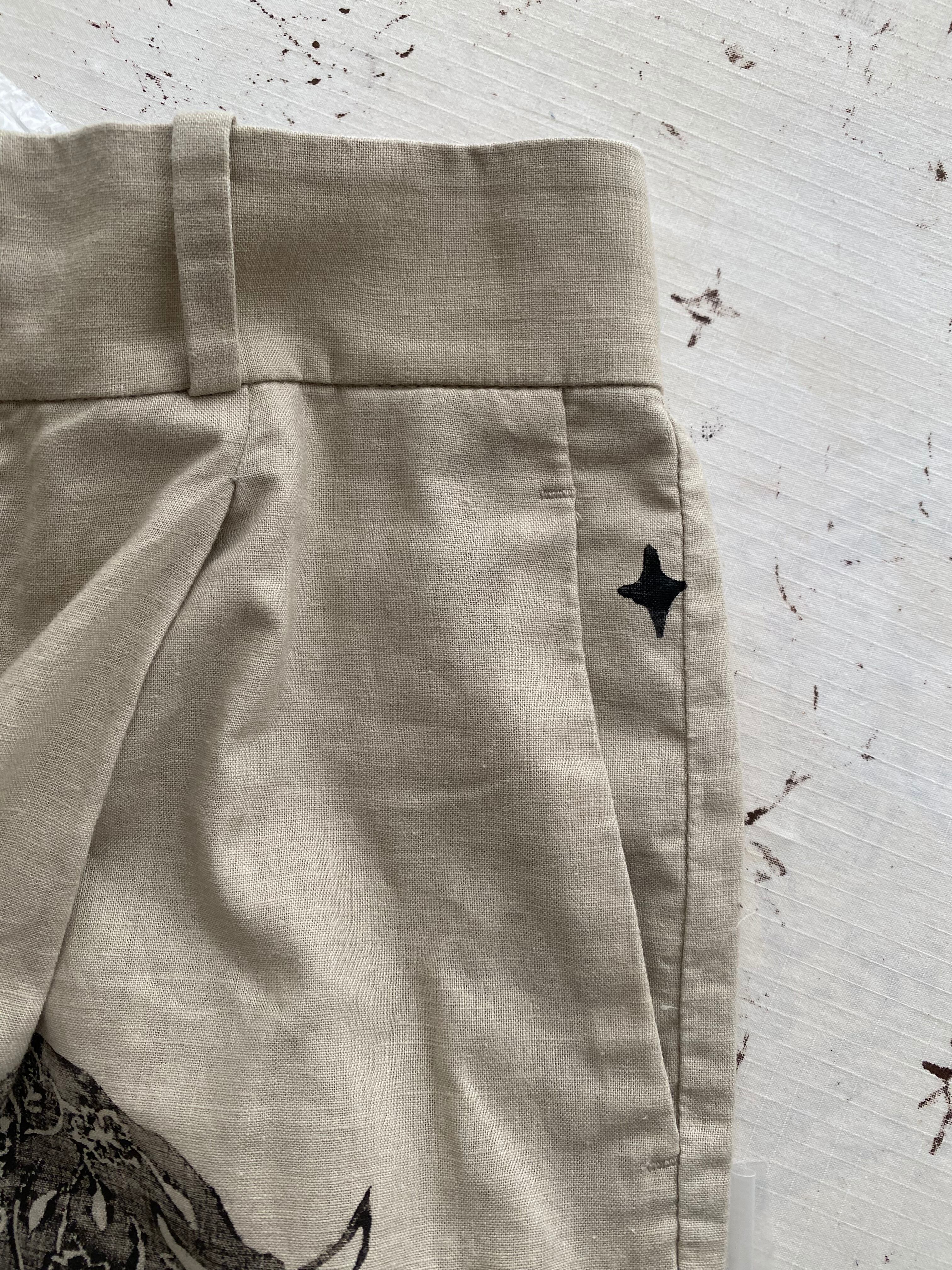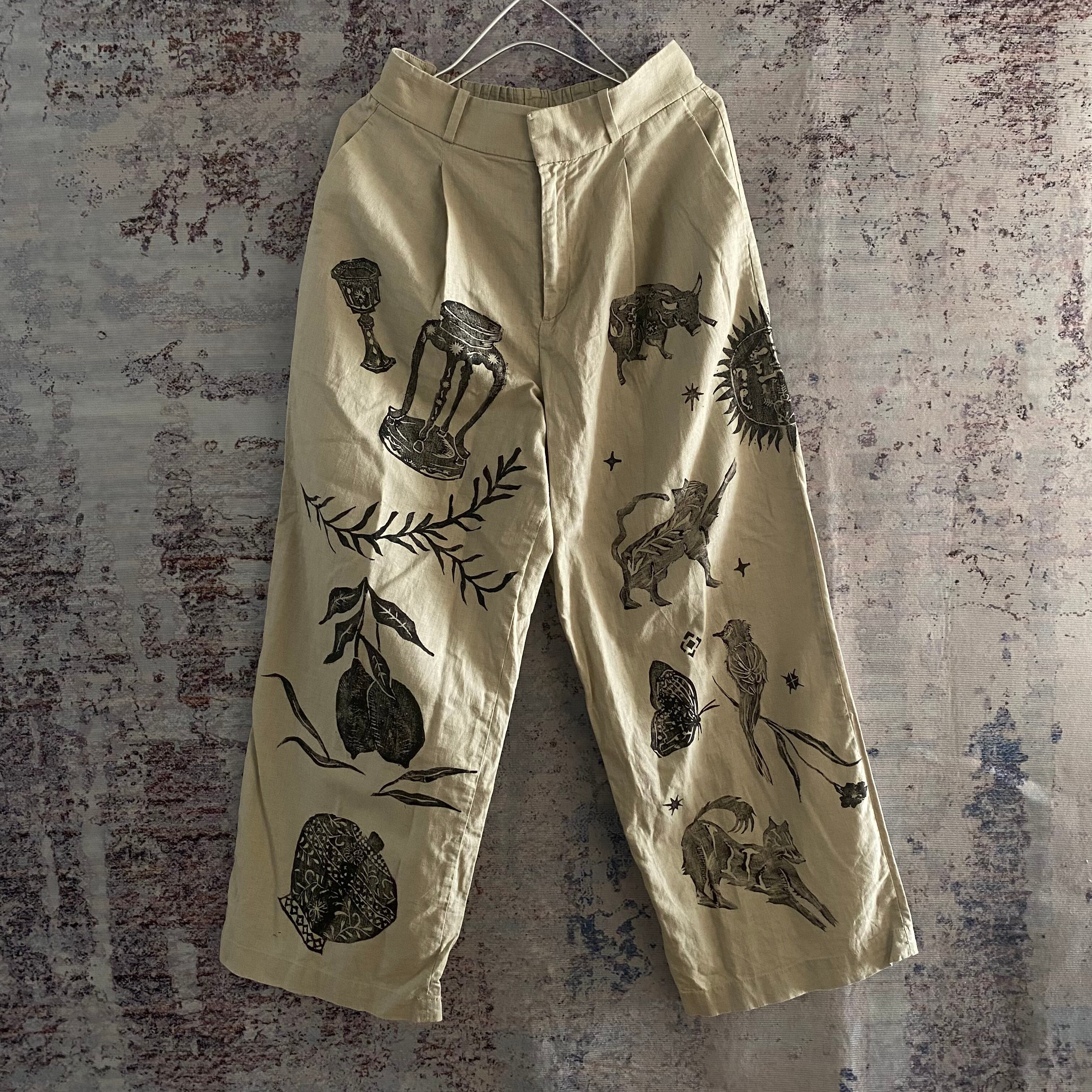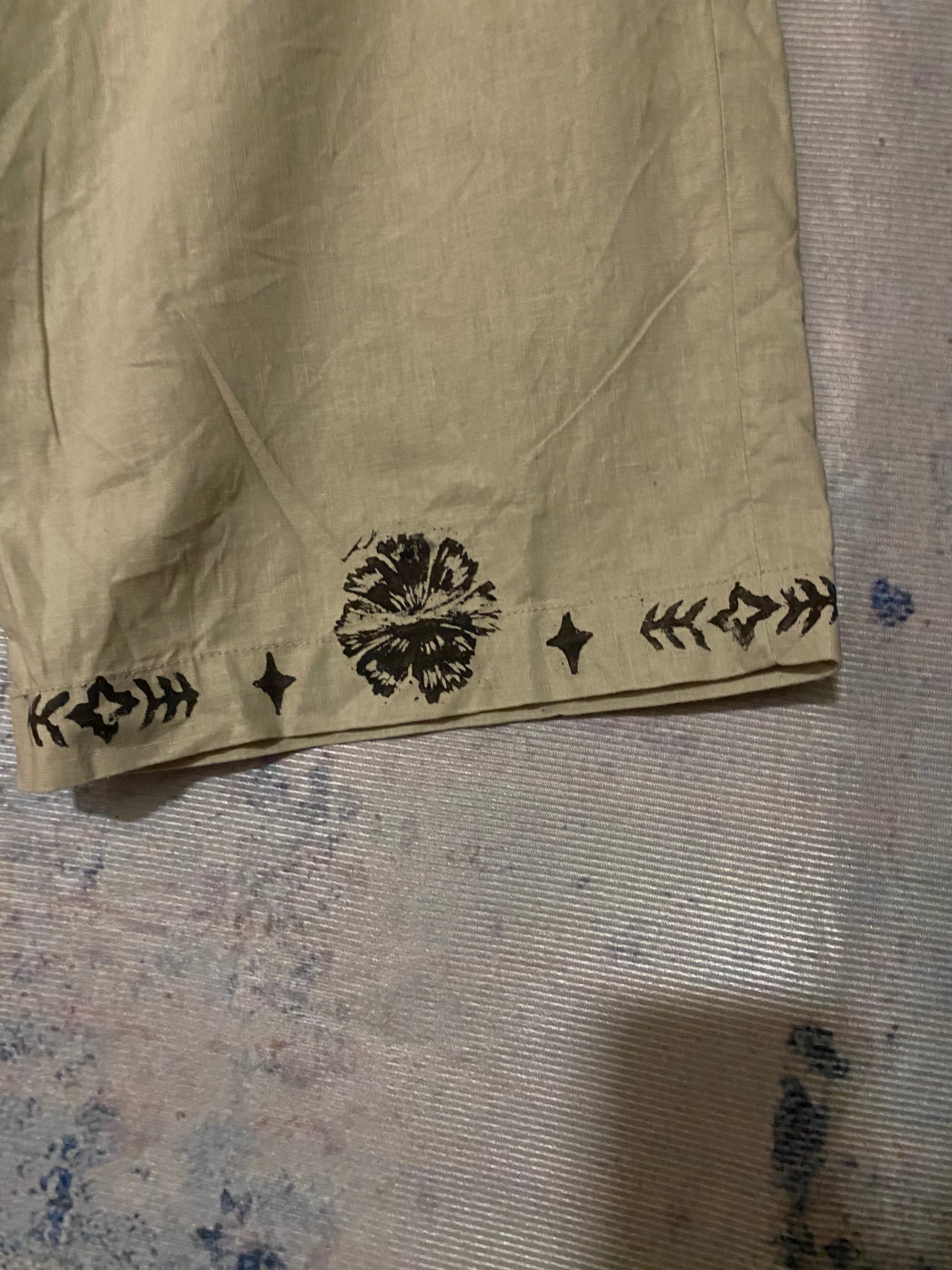 コットン綿リネンブロックプリントハンドプリントパンツレディース