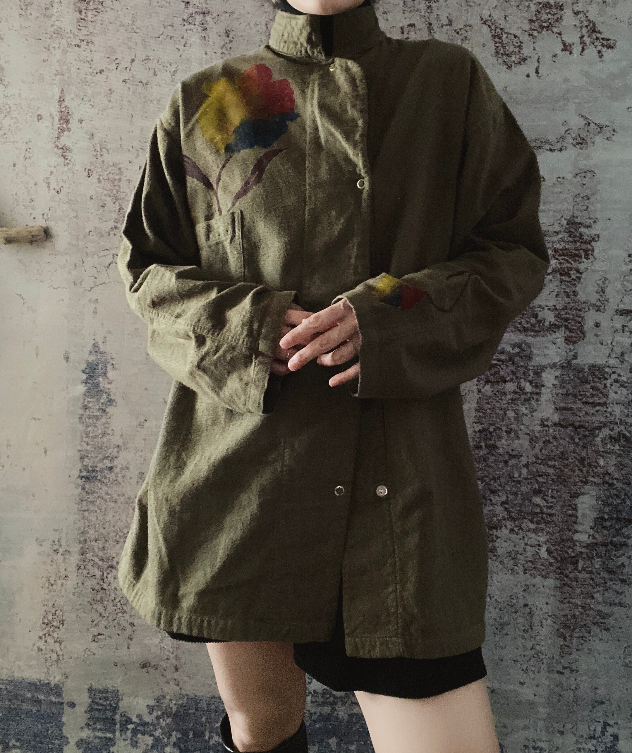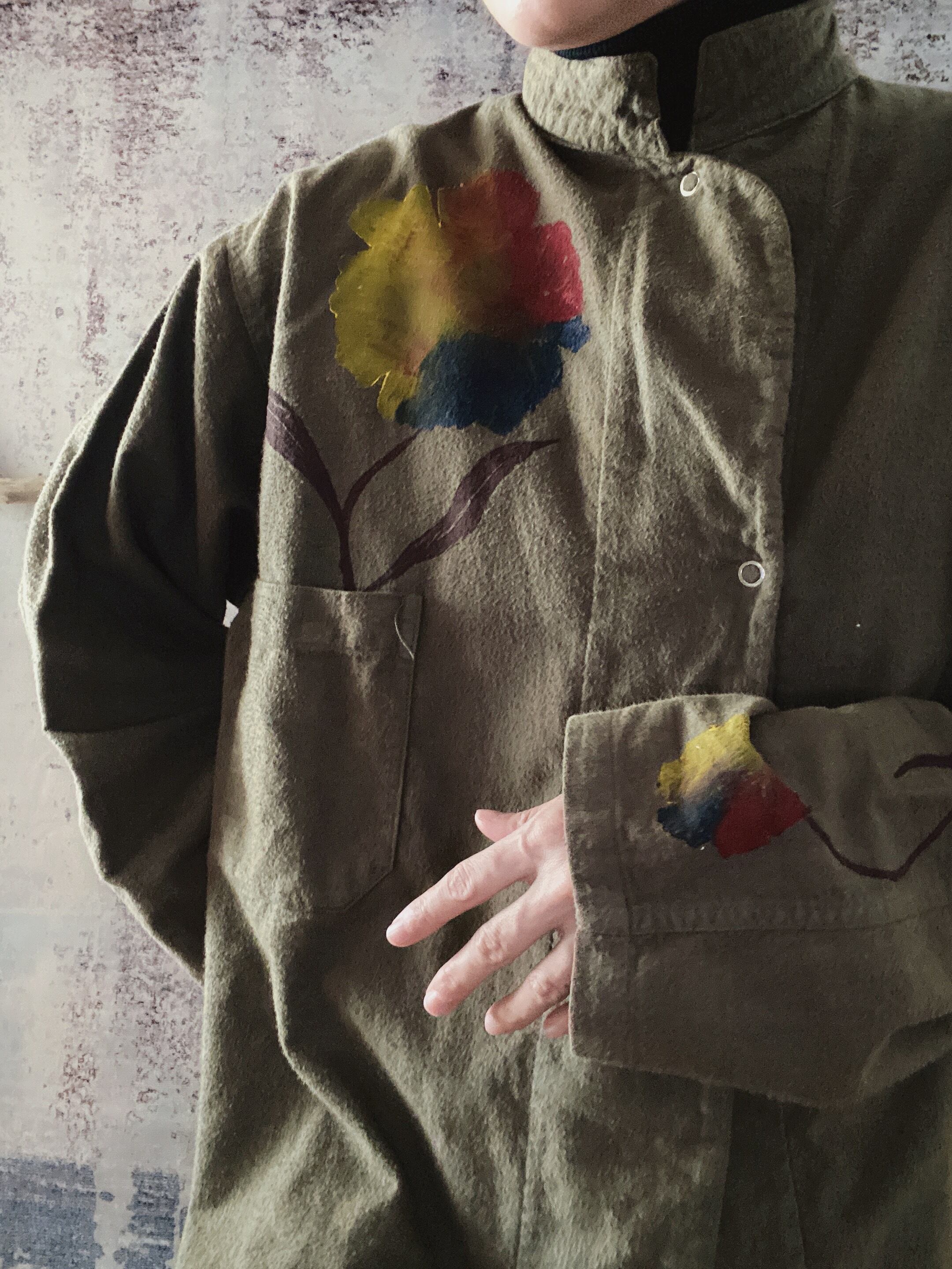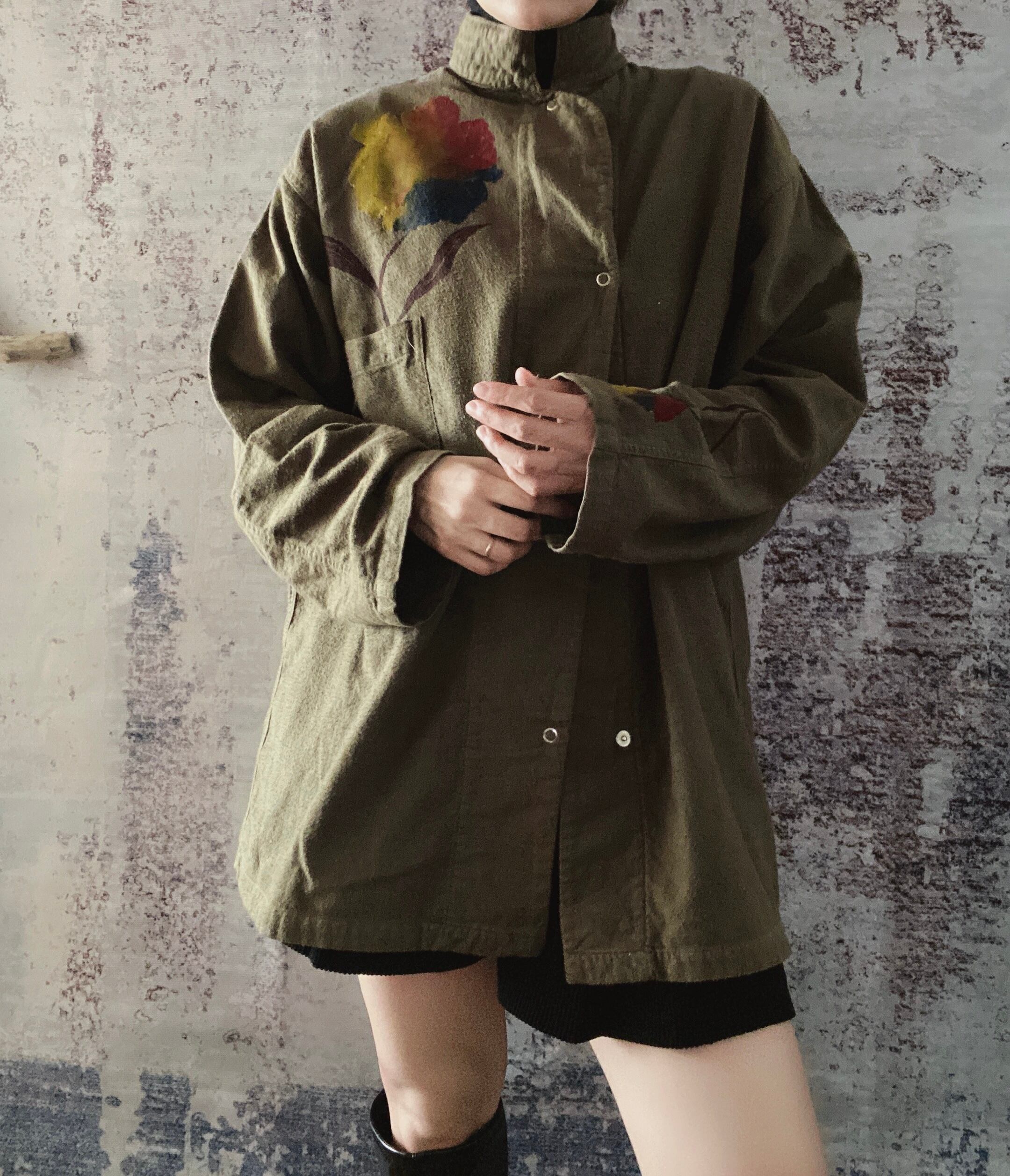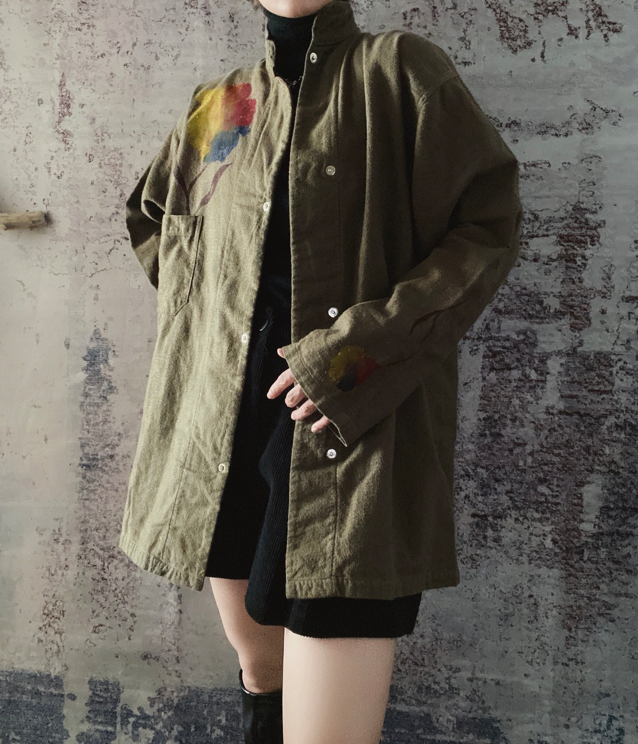 ミリタリーコットンフランネルシャツハイネック長袖ヴィンテージ古着