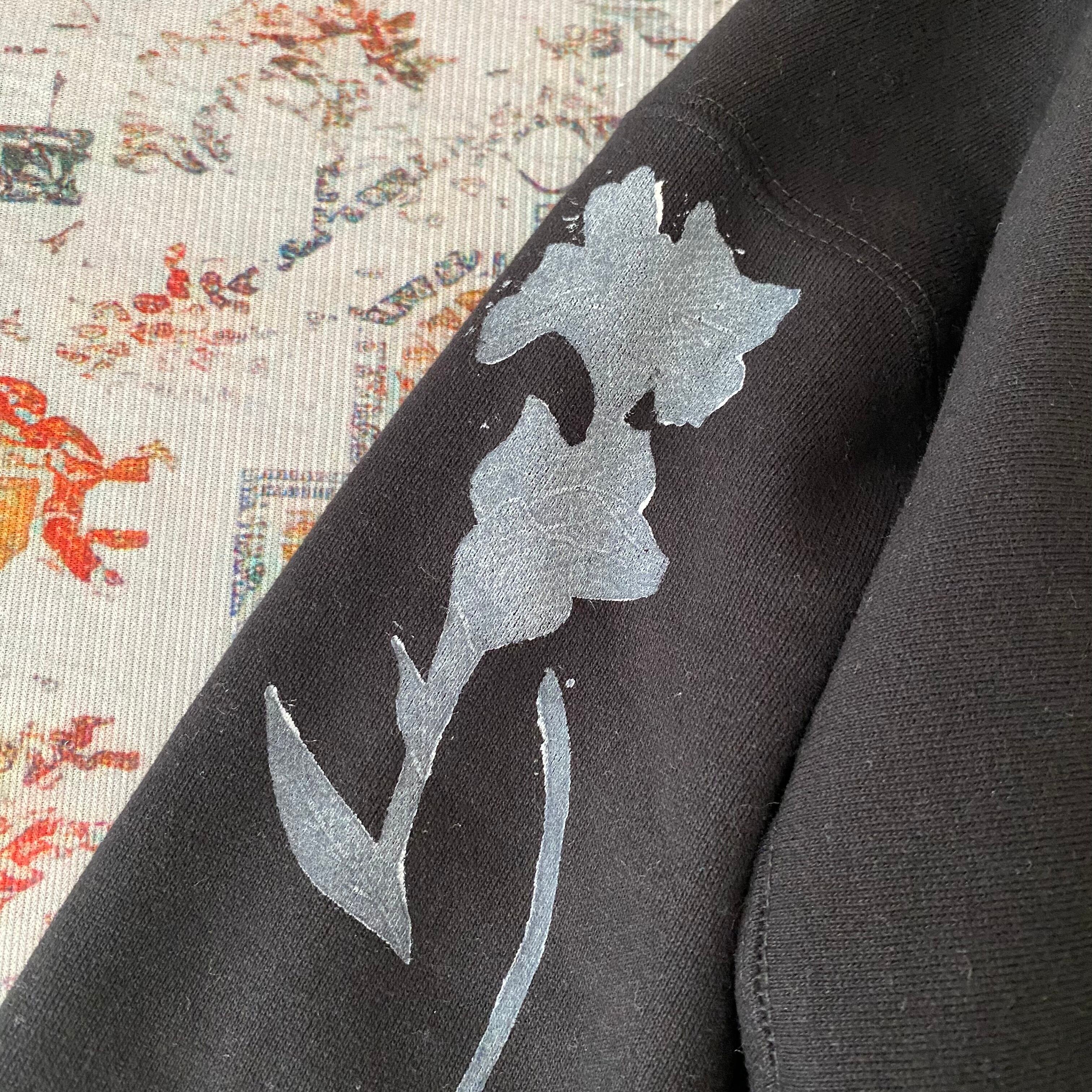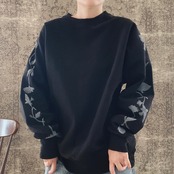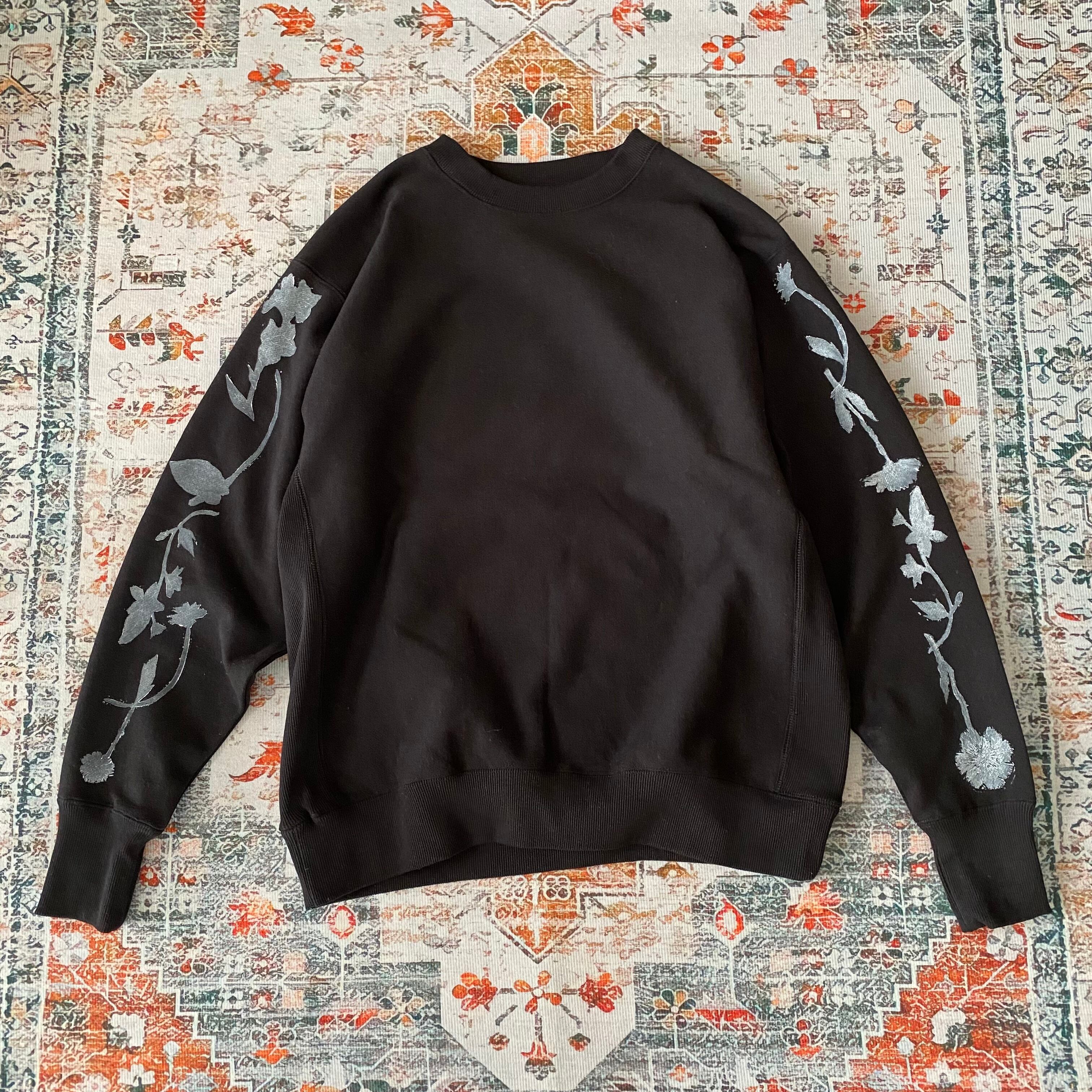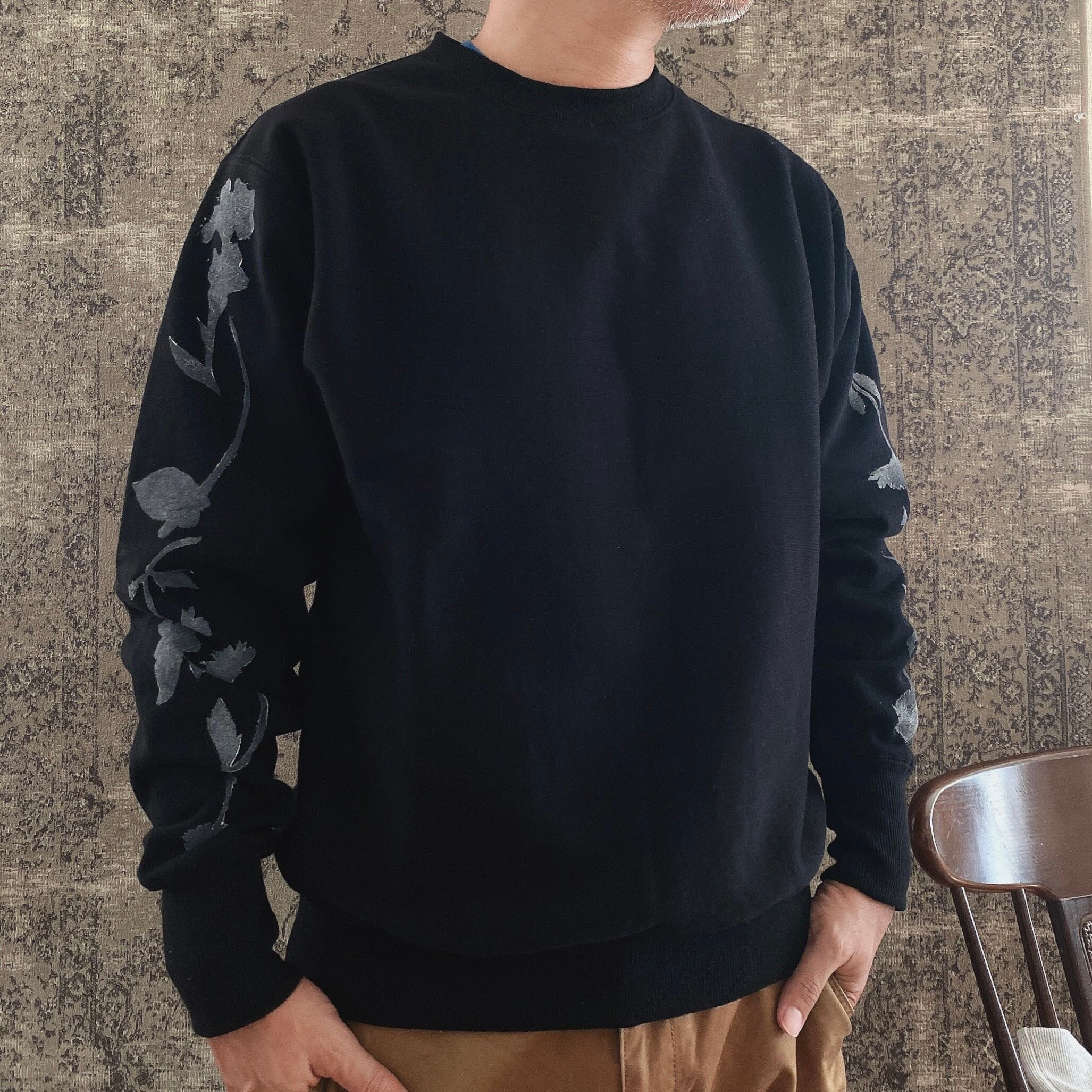 トレーナー花柄コットン綿ブロックプリントスウェットメンズ黒ブラック