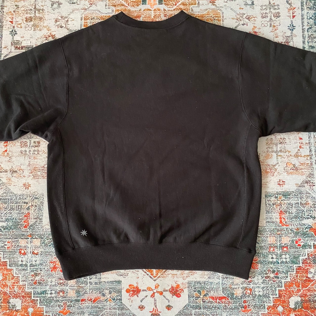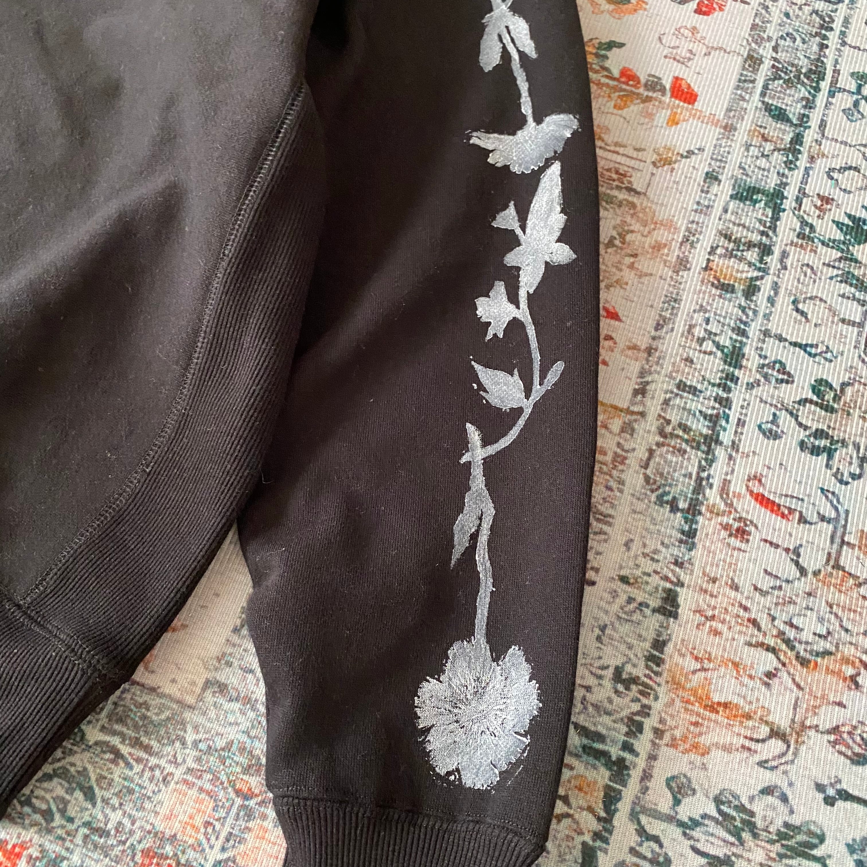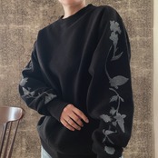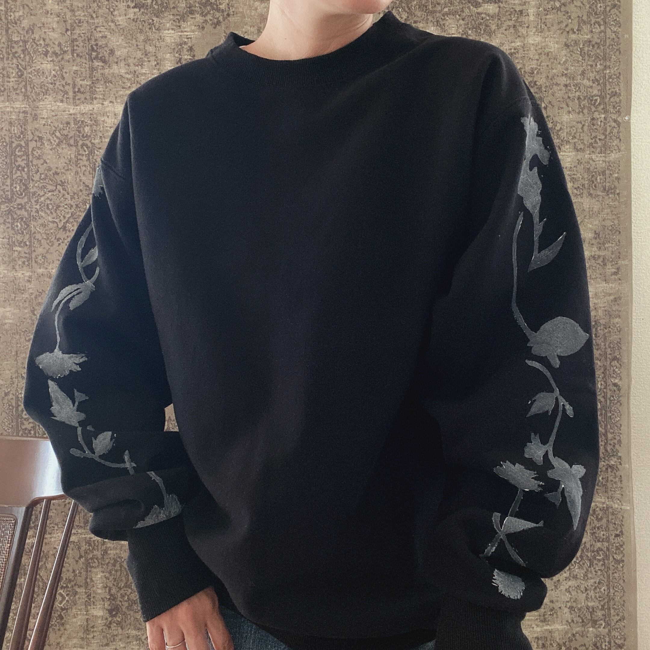 トレーナー花柄コットン綿ブロックプリントスウェットメンズ黒ブラック